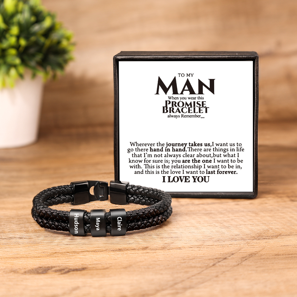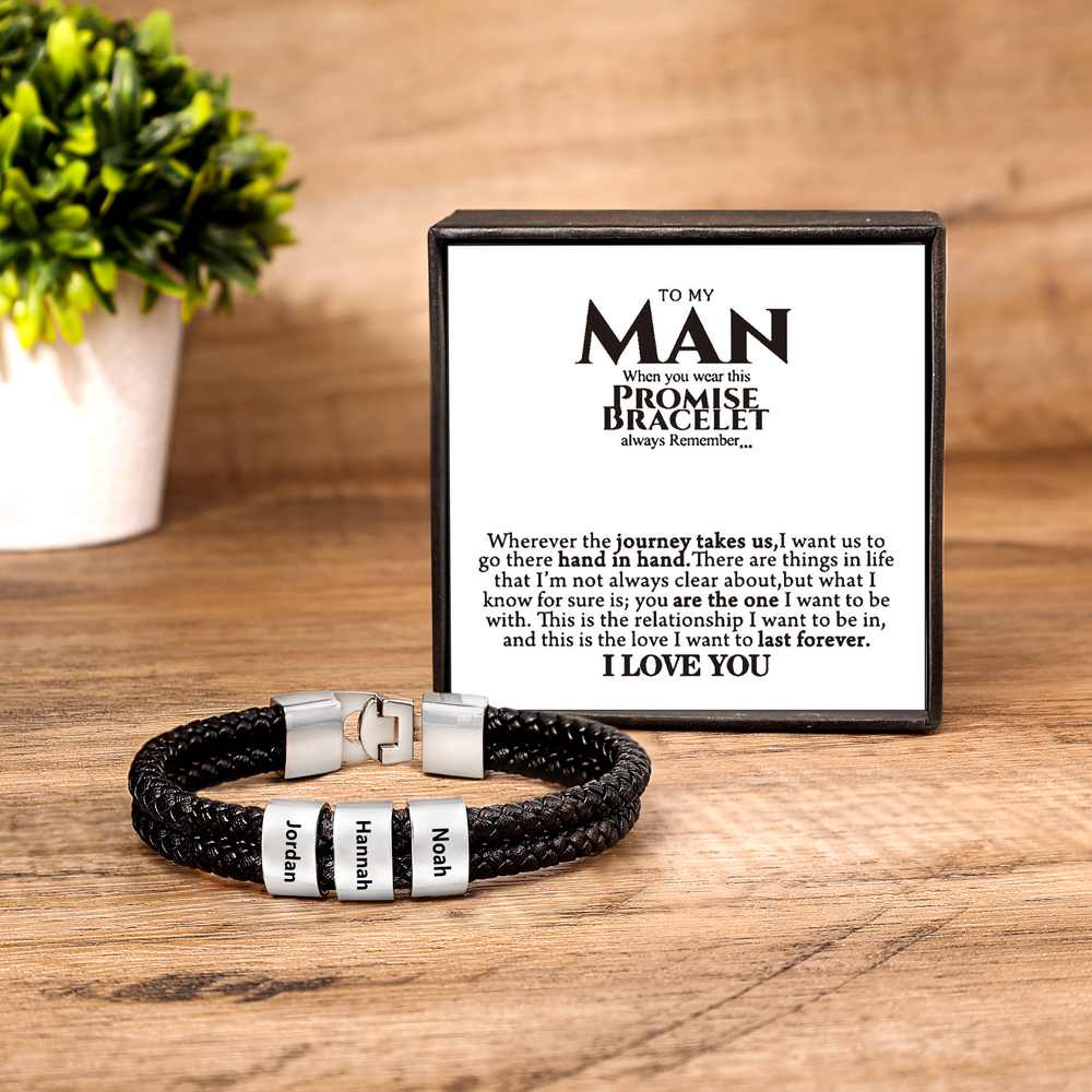 3 Names-Personalised To My Man Braided Leather Bracelet Set With Gift Card Gift Box-Custom Men's Bracelet Engraved 3 Names for Him