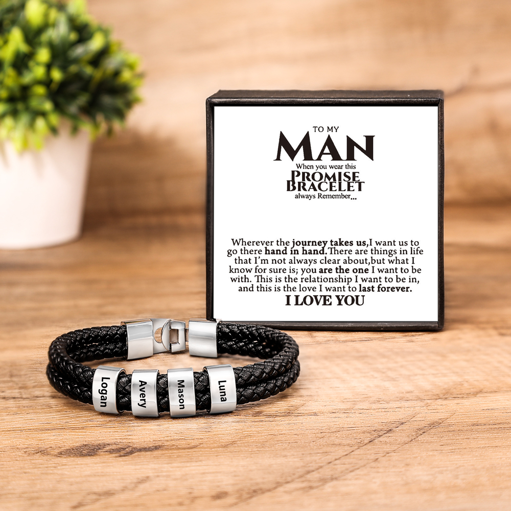 4 Names-Personalised To My Man Braided Leather Bracelet Set With Gift Card Gift Box-Custom Men's Bracelet Engraved 4 Names for Him