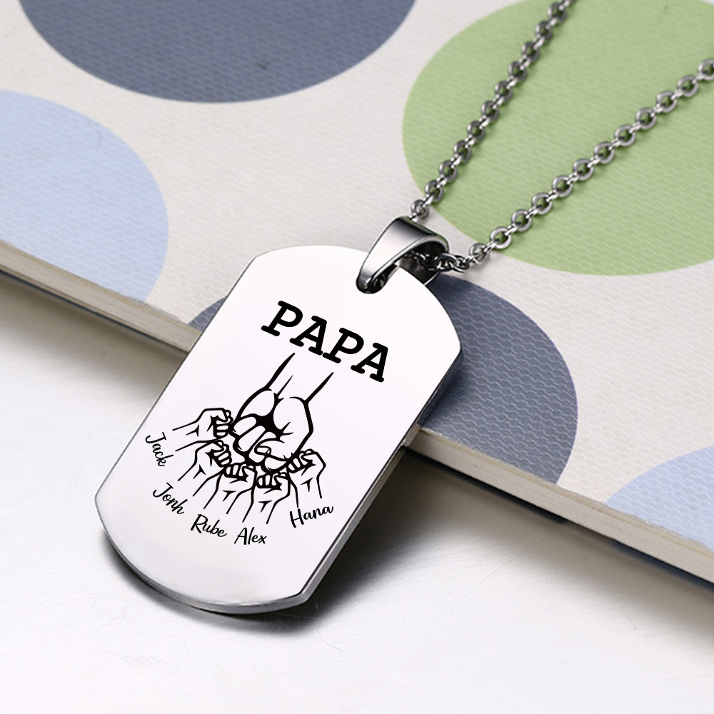 Custom Fist Bump Family Necklace with 5 Kids Names Personalised Photo Dog Tag Necklace Father's Day Gifts