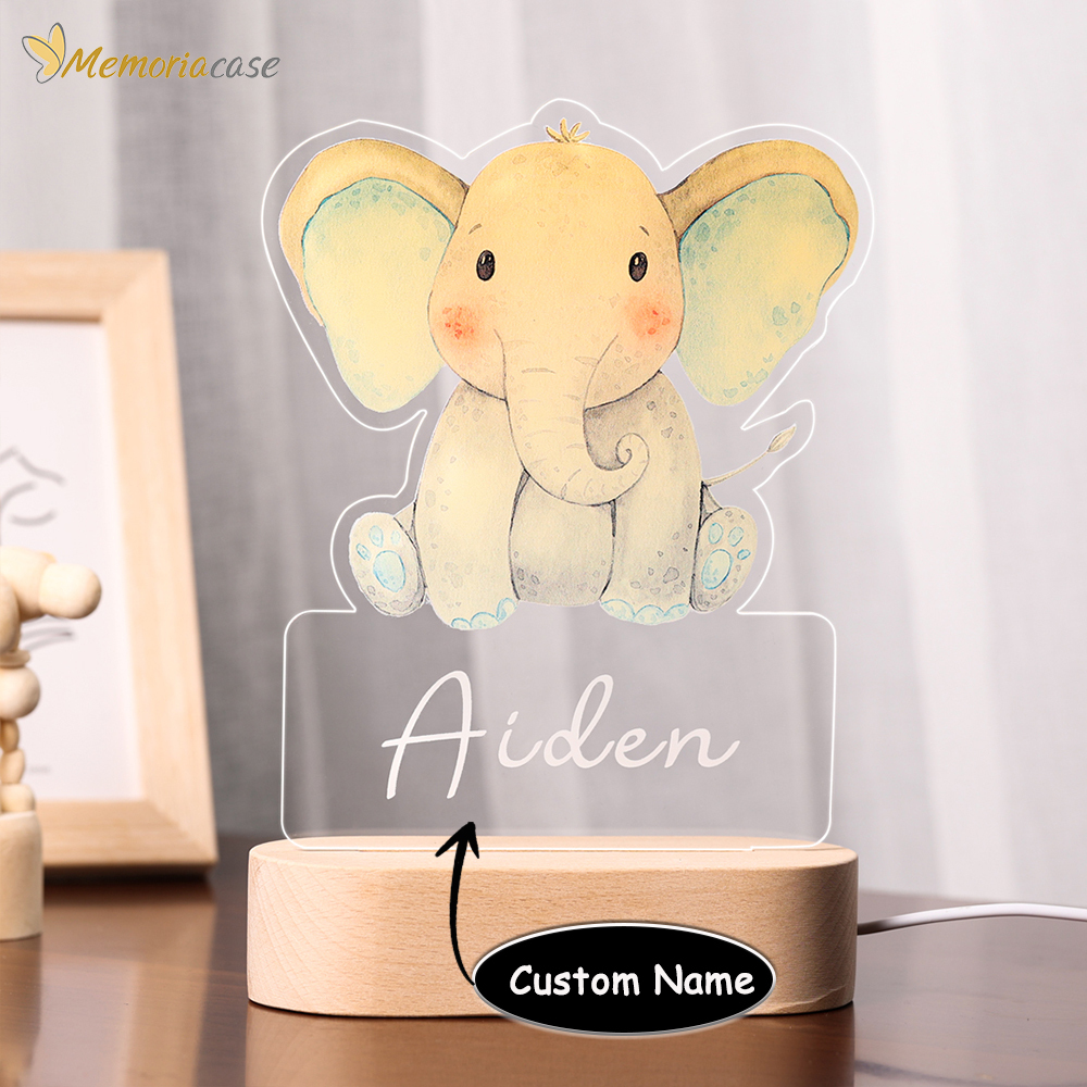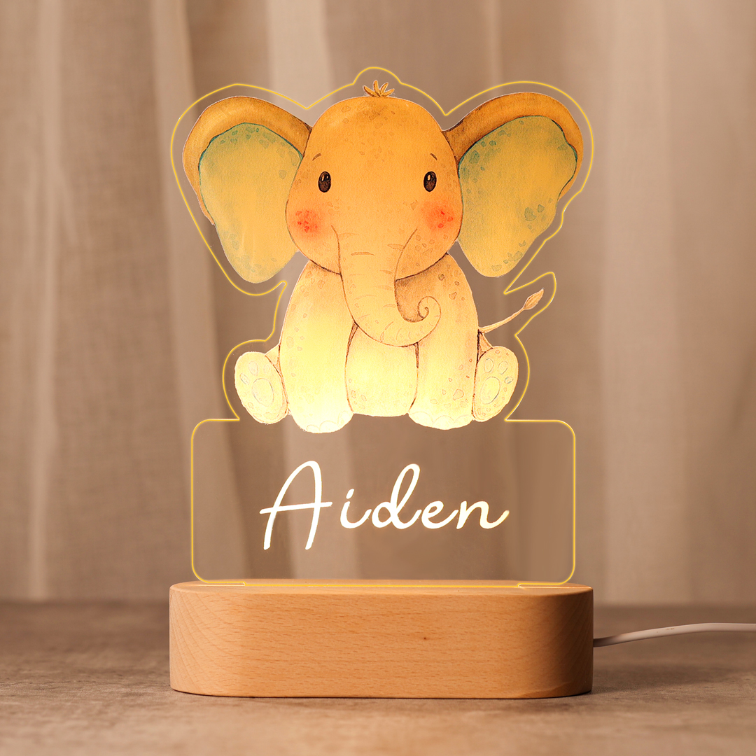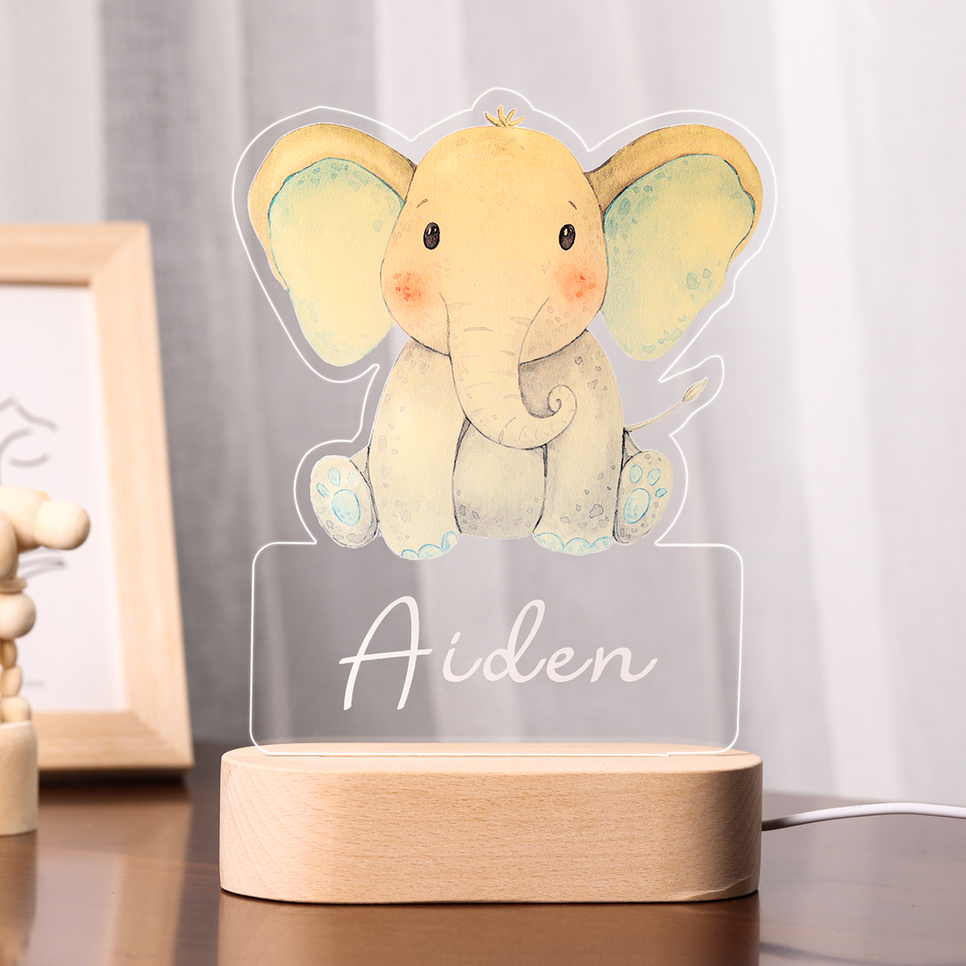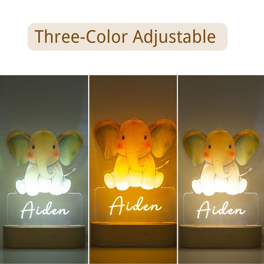 Custom Name Night Light-Personalised Color-Changing Elephant Night Light with LED Lighting Warm Light for Kids