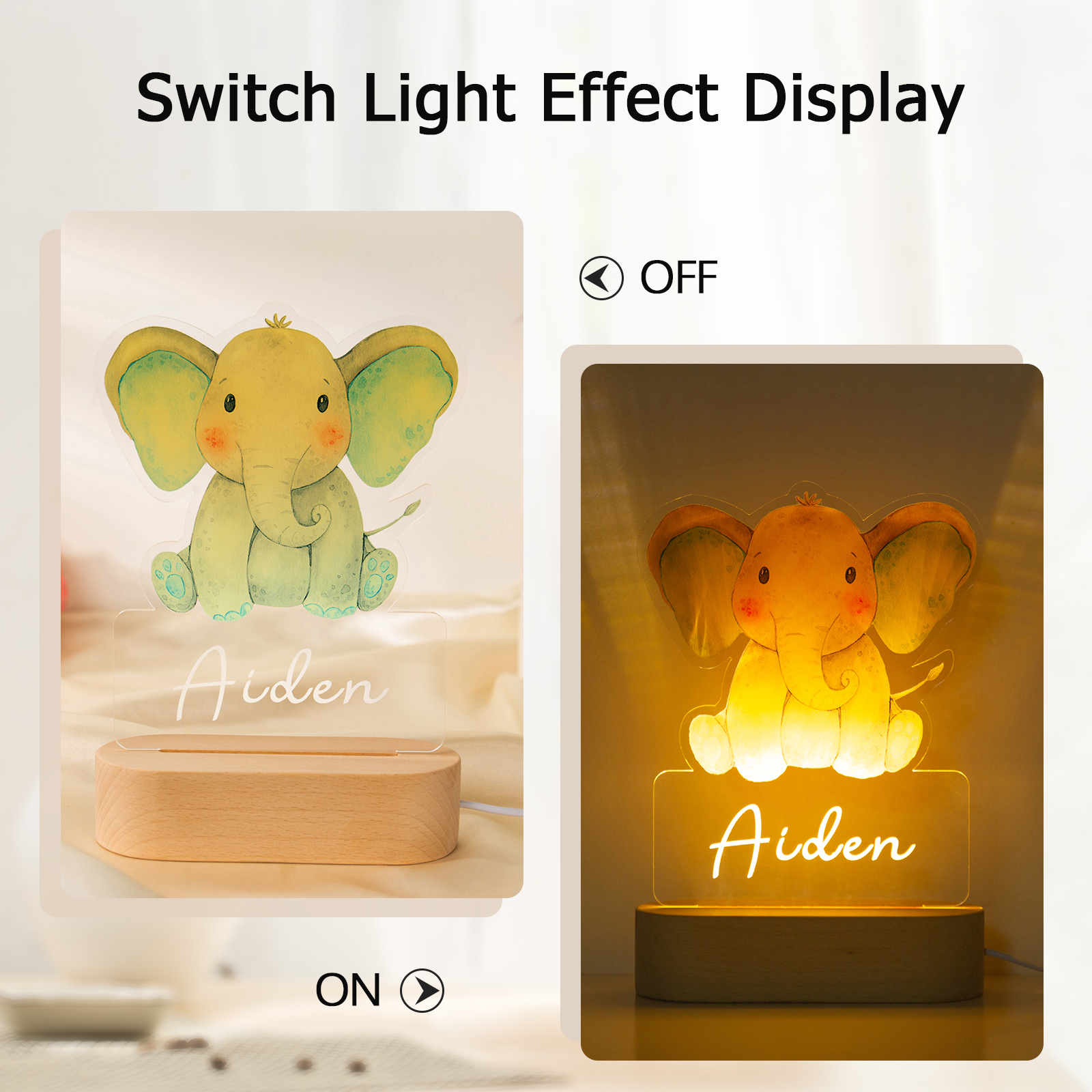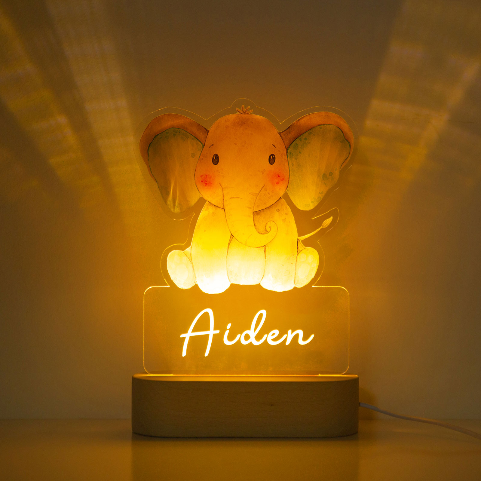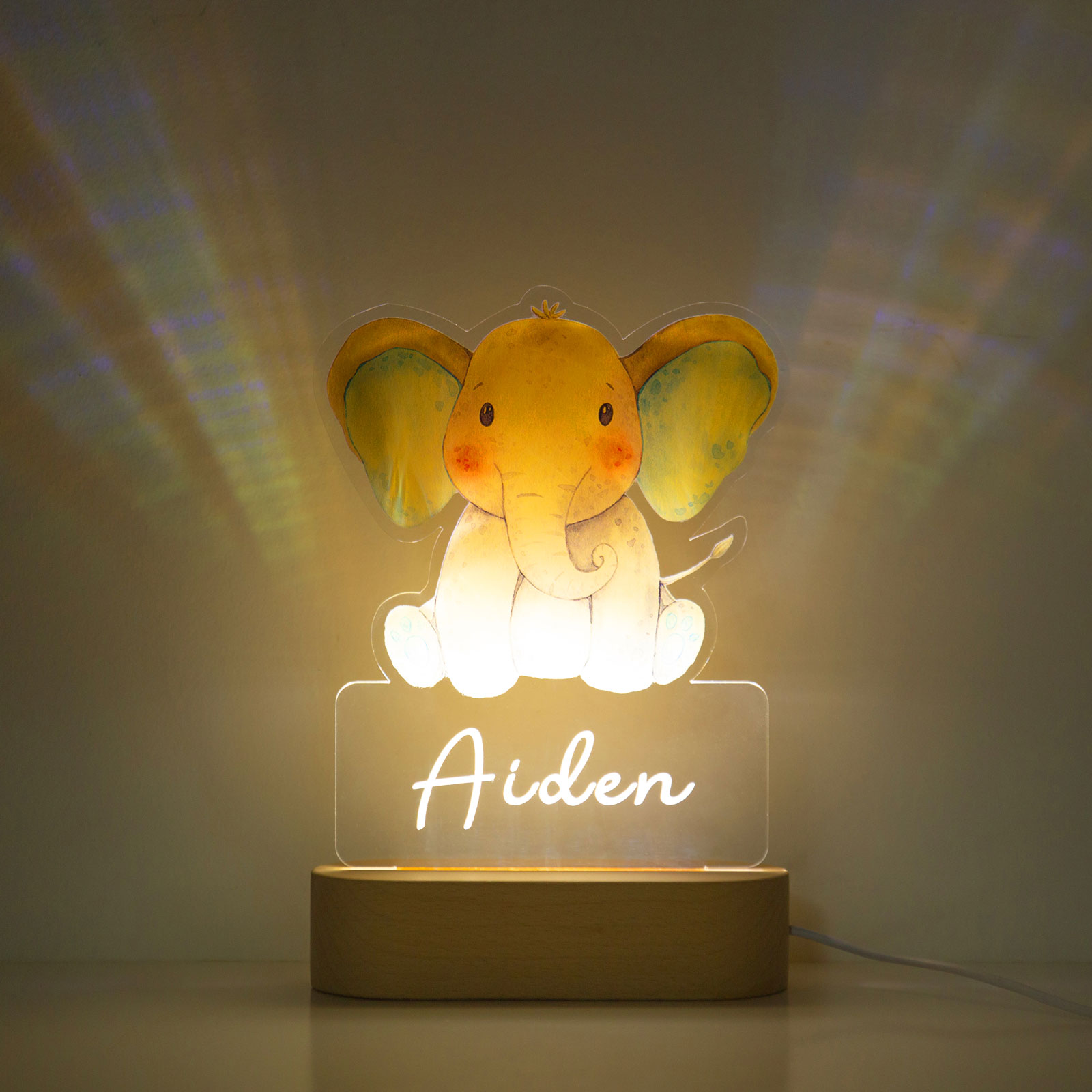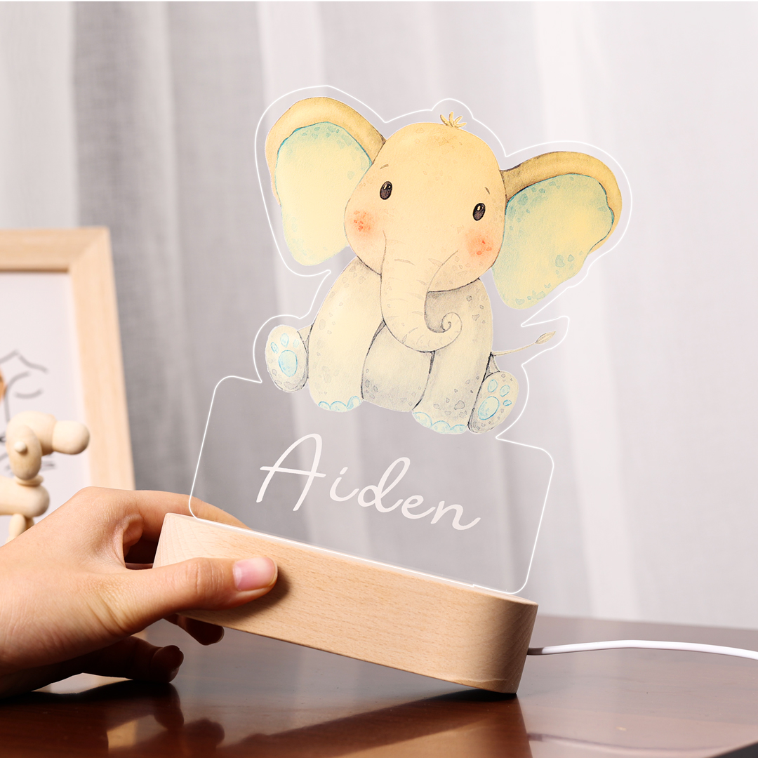 Custom Name Night Light-Personalised Color-Changing Elephant Night Light with LED Lighting Warm Light for Kids