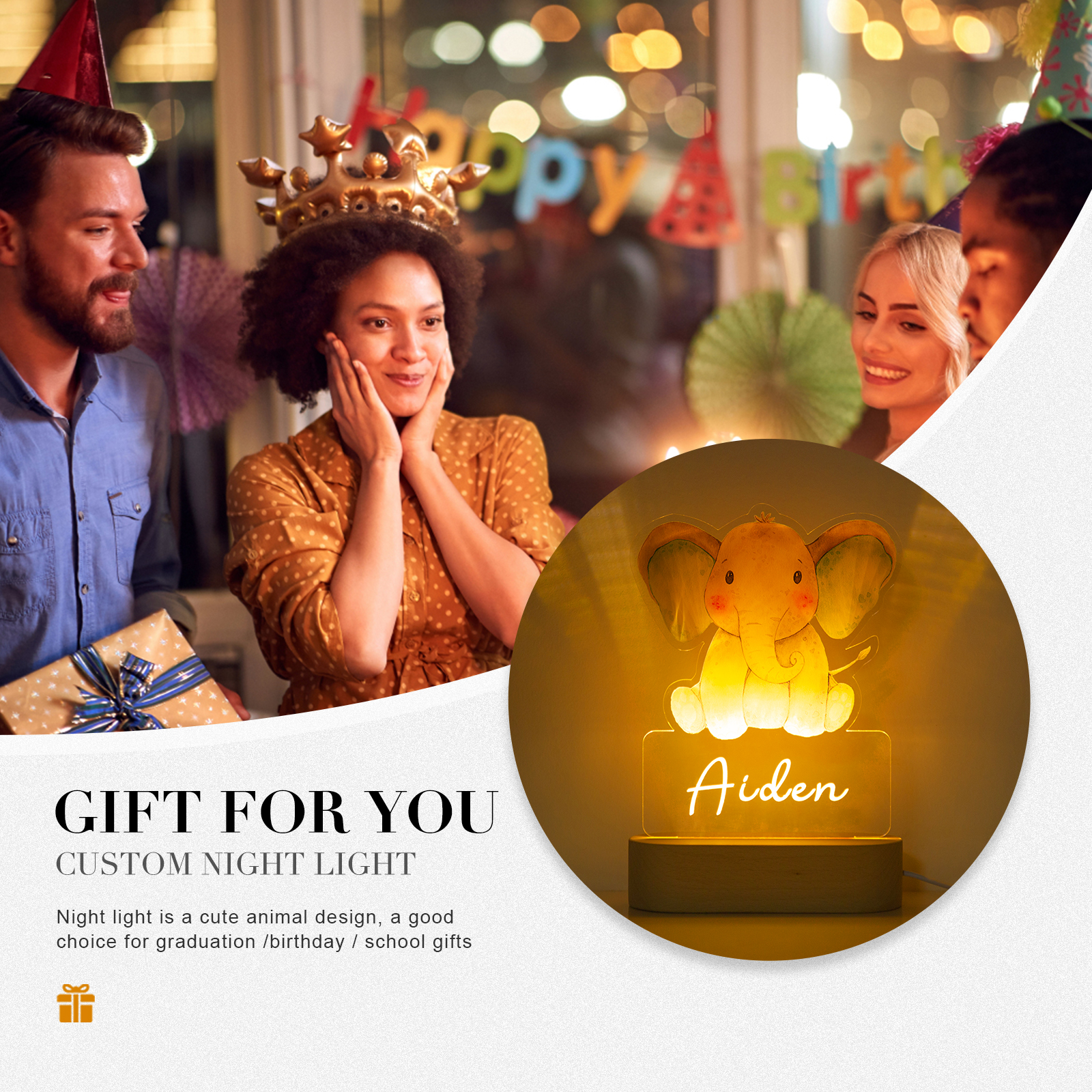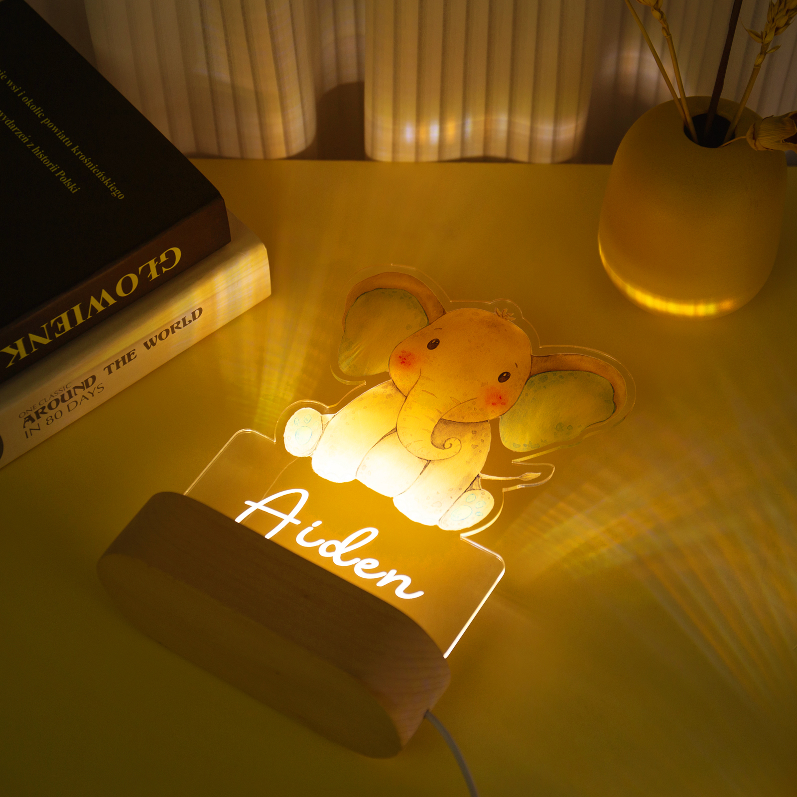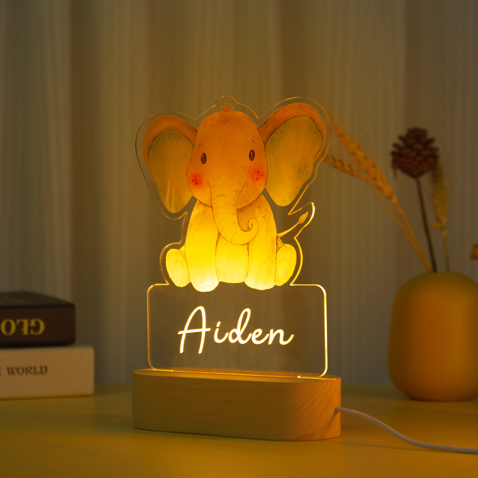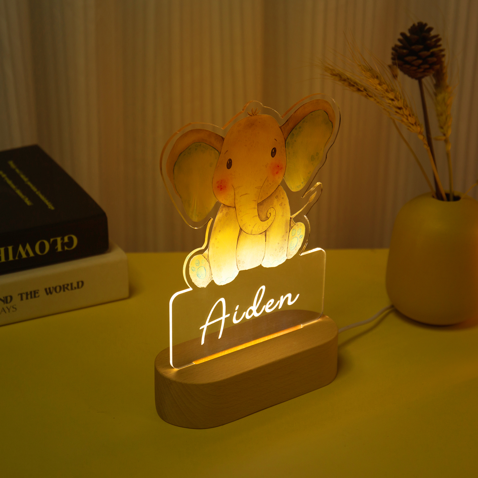 Custom Name Night Light-Personalised Color-Changing Elephant Night Light with LED Lighting Warm Light for Kids