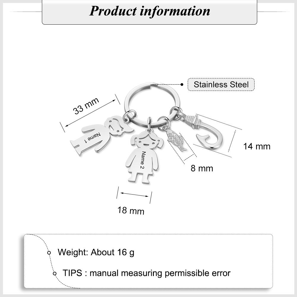 Personalised Kids Charm Keyring Engraved 2 Names Keyring Gifts For Dad