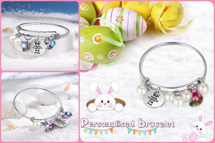 Easter Gifts Personalised Bunny Bangle Bracelet With Name Peals Crystals Bangle Gifts For Her