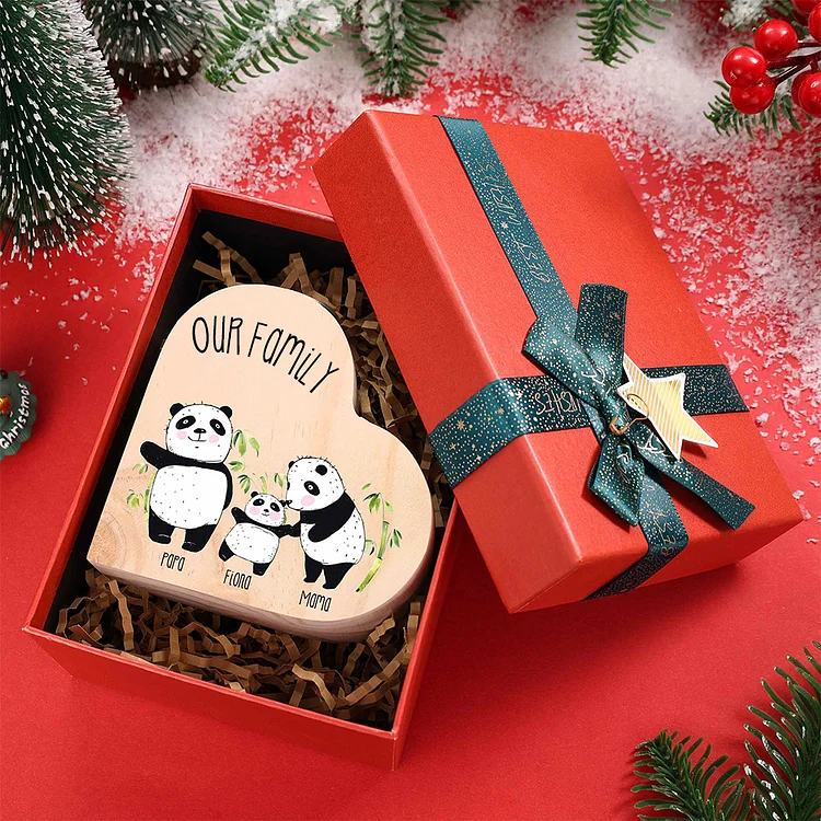 Family Panda Heart Candle Holder Personalized Wooden Candlestick Custom 3 Names