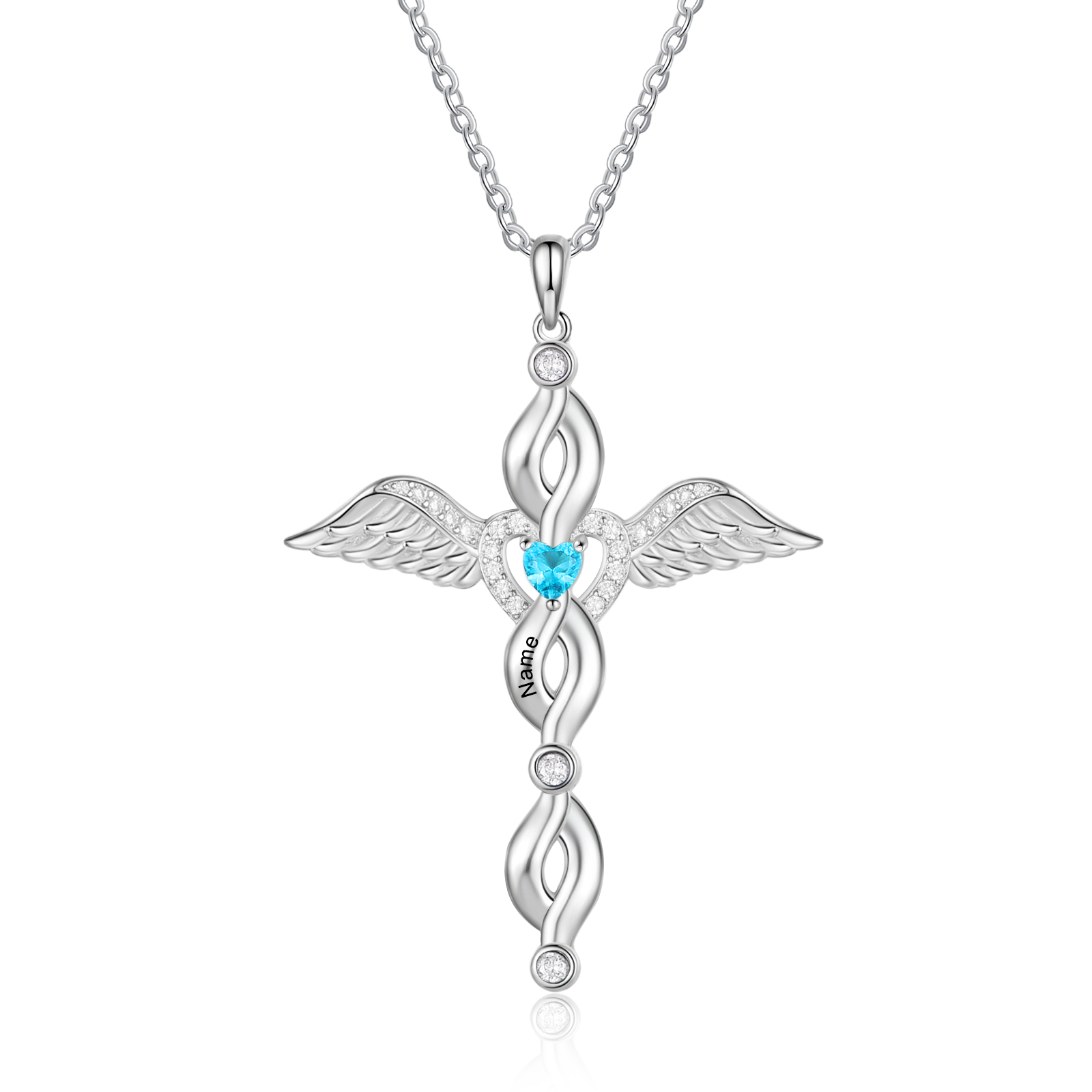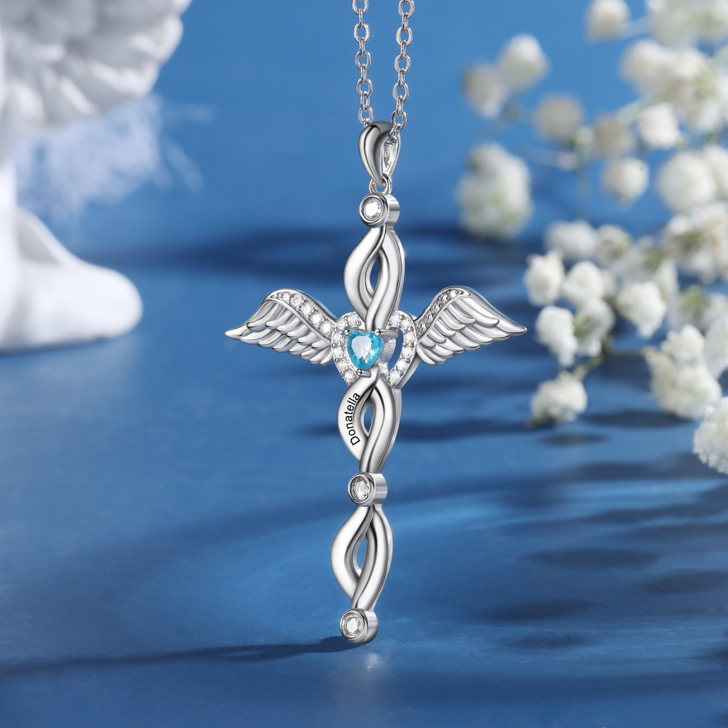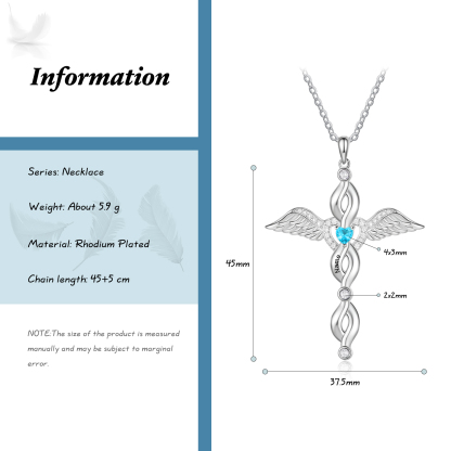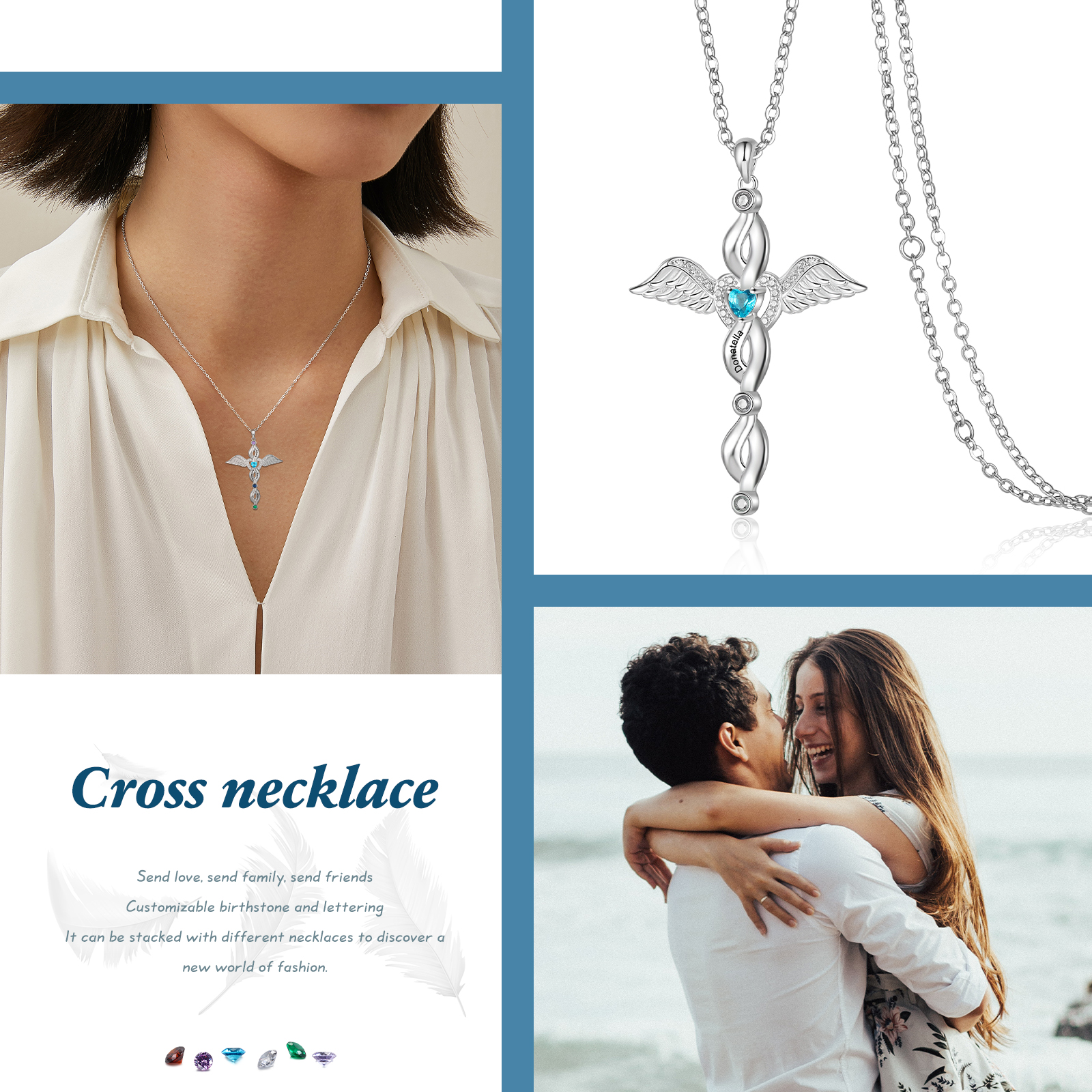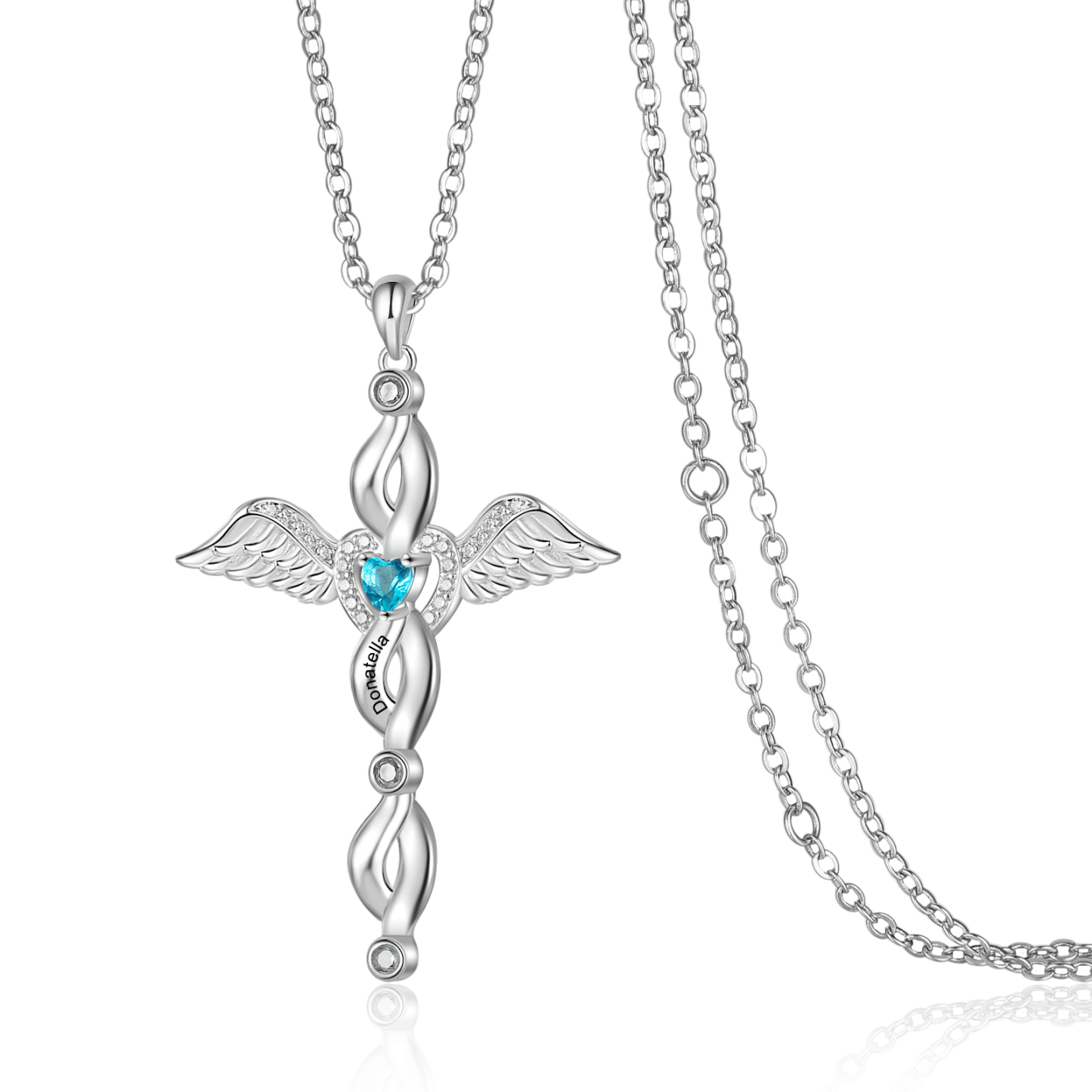 First Communion Personalised Cross Necklace With Names Custom 1 Birthstone Wings Necklace Gifts for Her