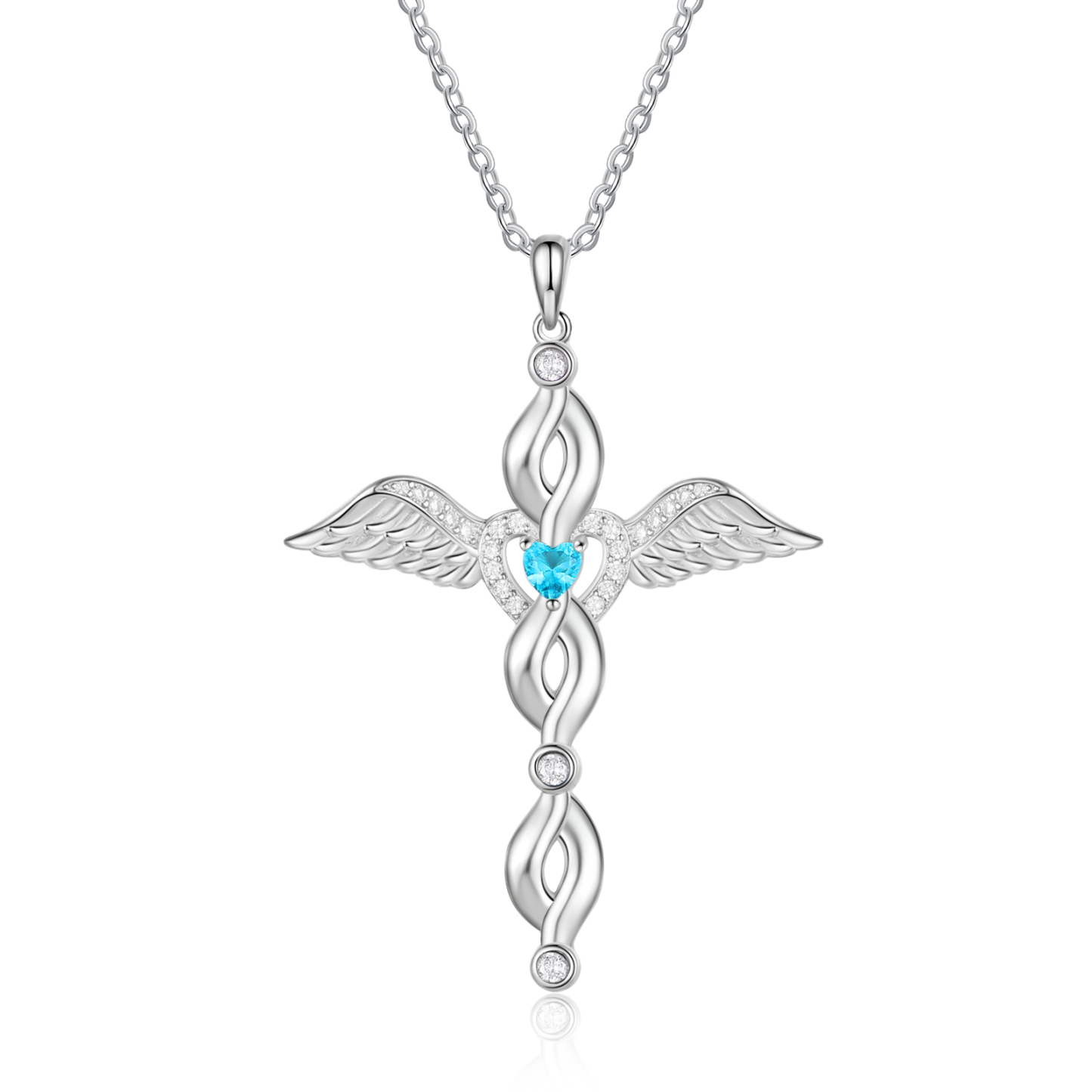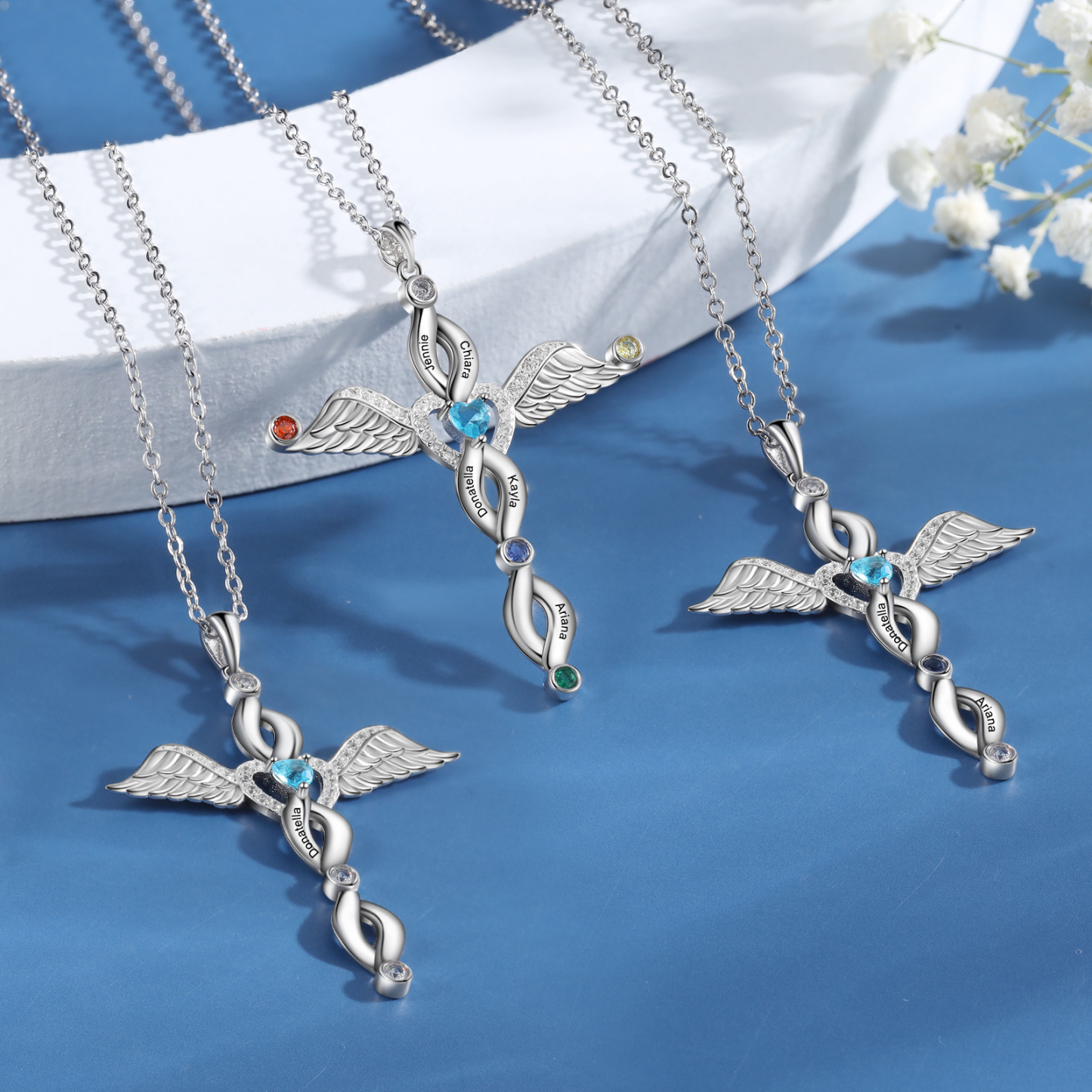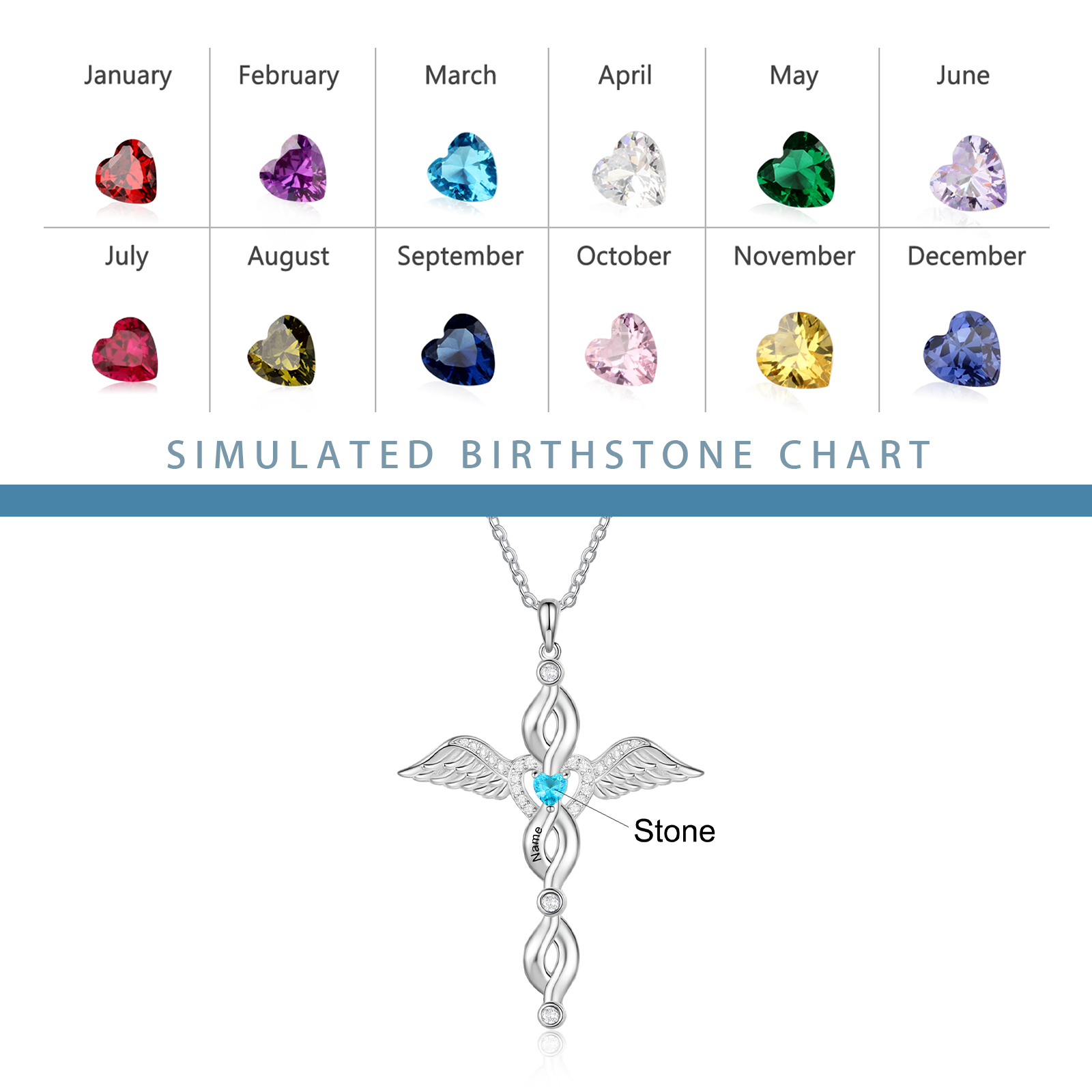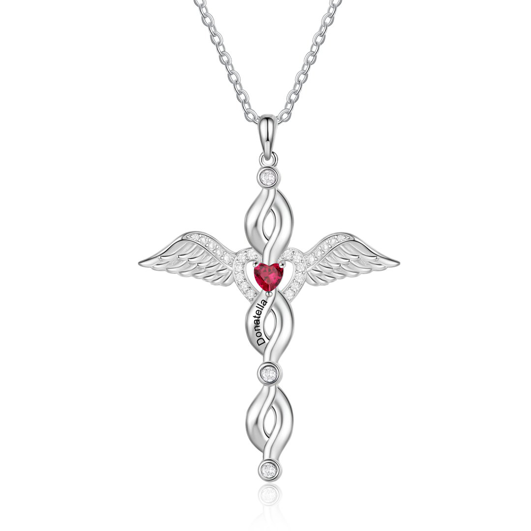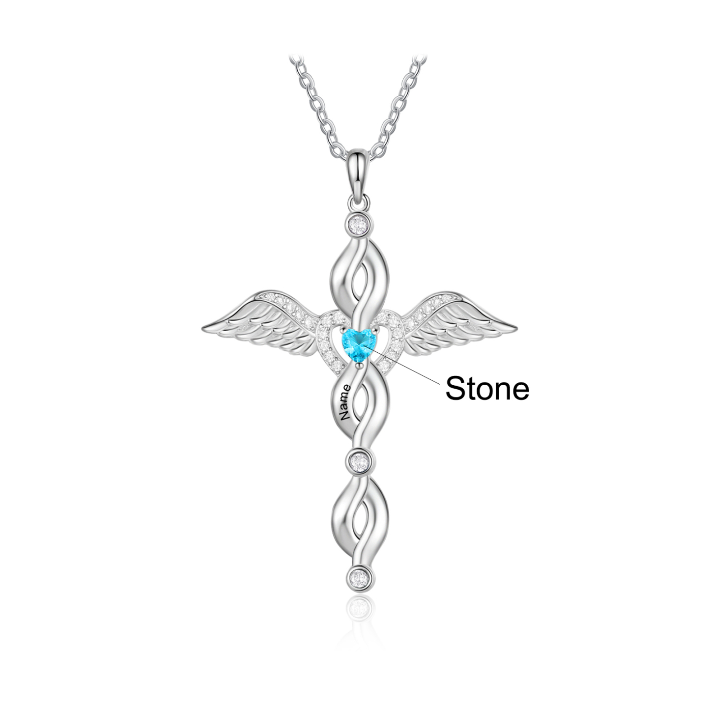 First Communion Personalised Cross Necklace With Names Custom 1 Birthstone Wings Necklace Gifts for Her