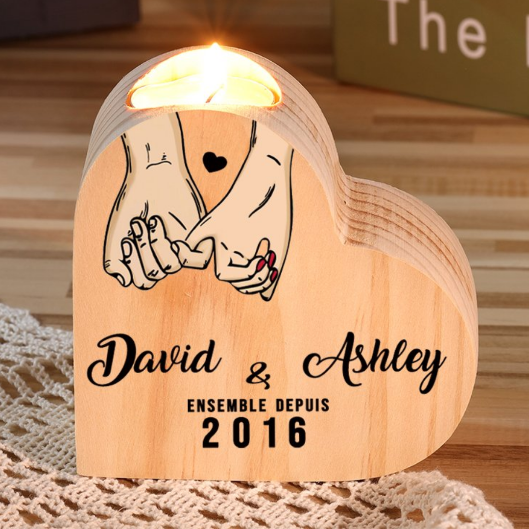 For Couple-Personalised Wooden Heart Candle Holder Pinky Promise Candlesticks