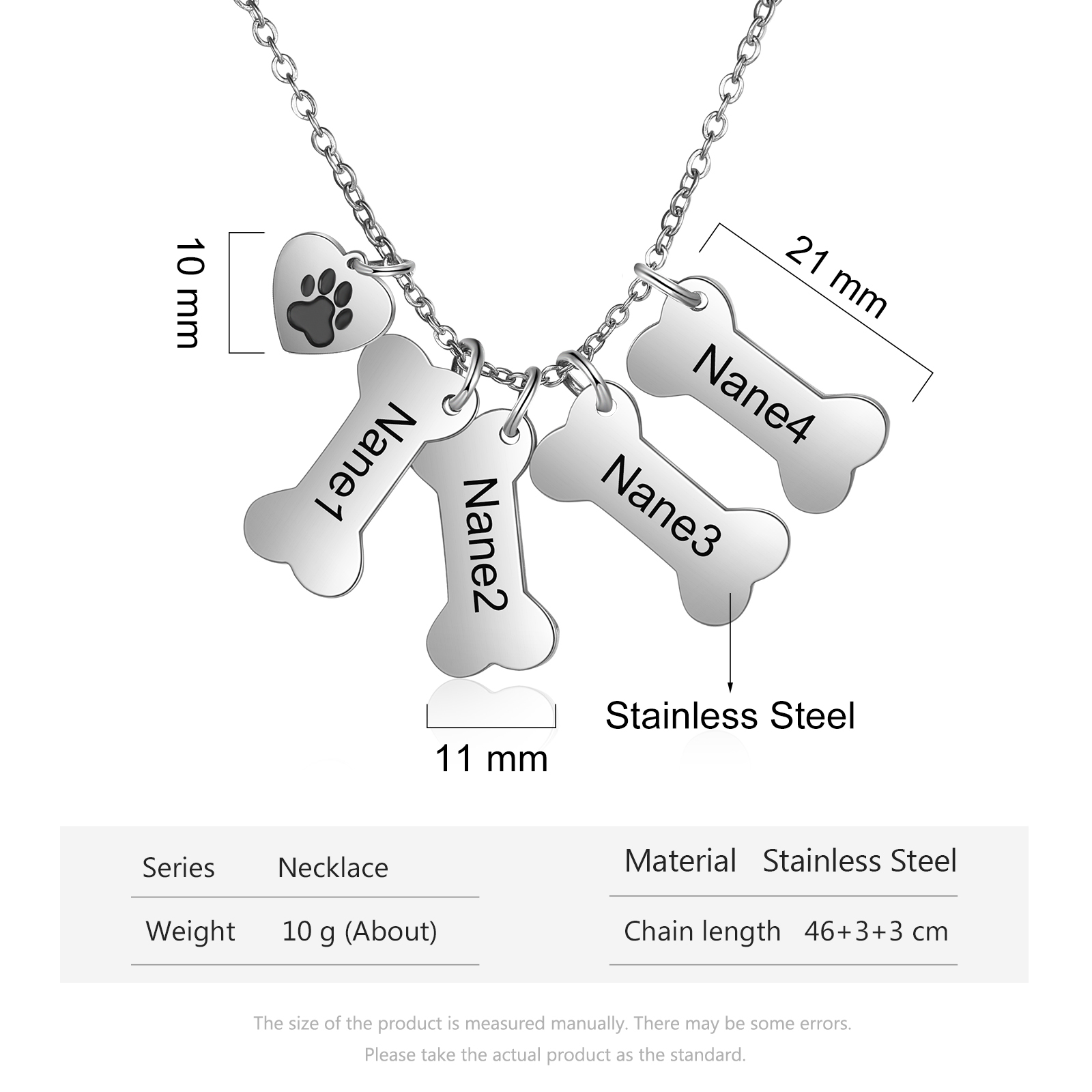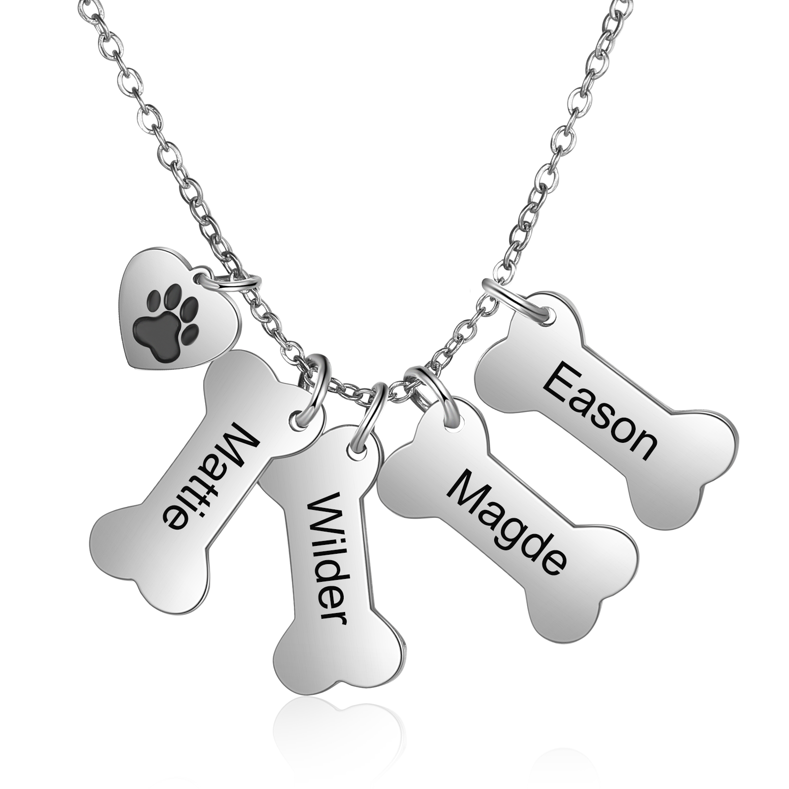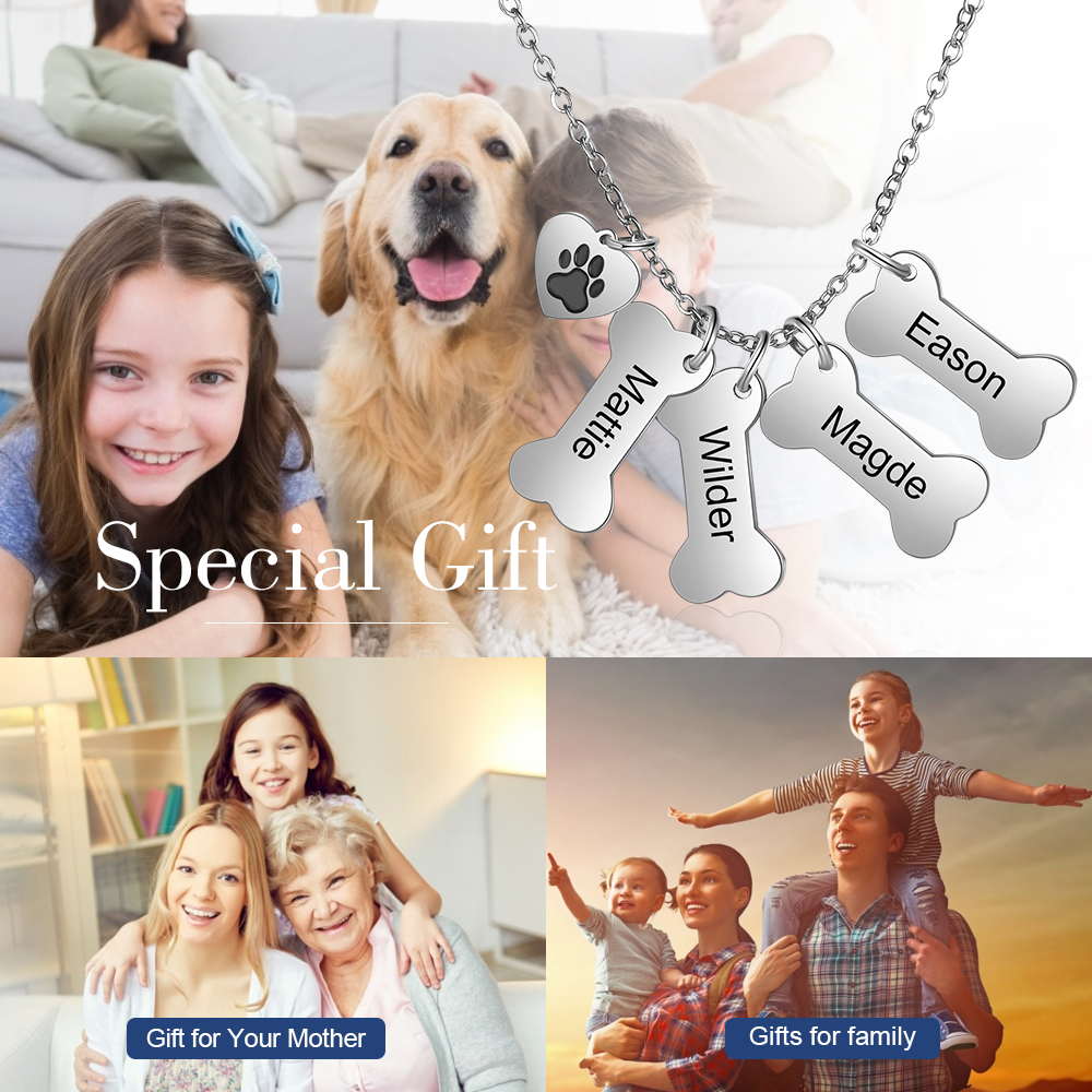 Jessemade Personalised Dog Bone 4 Names Necklace