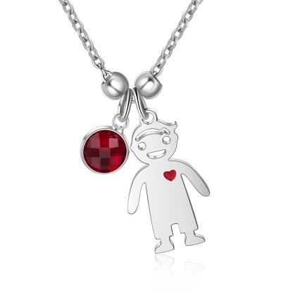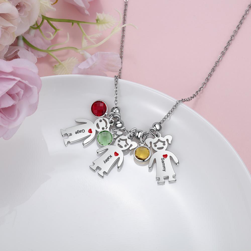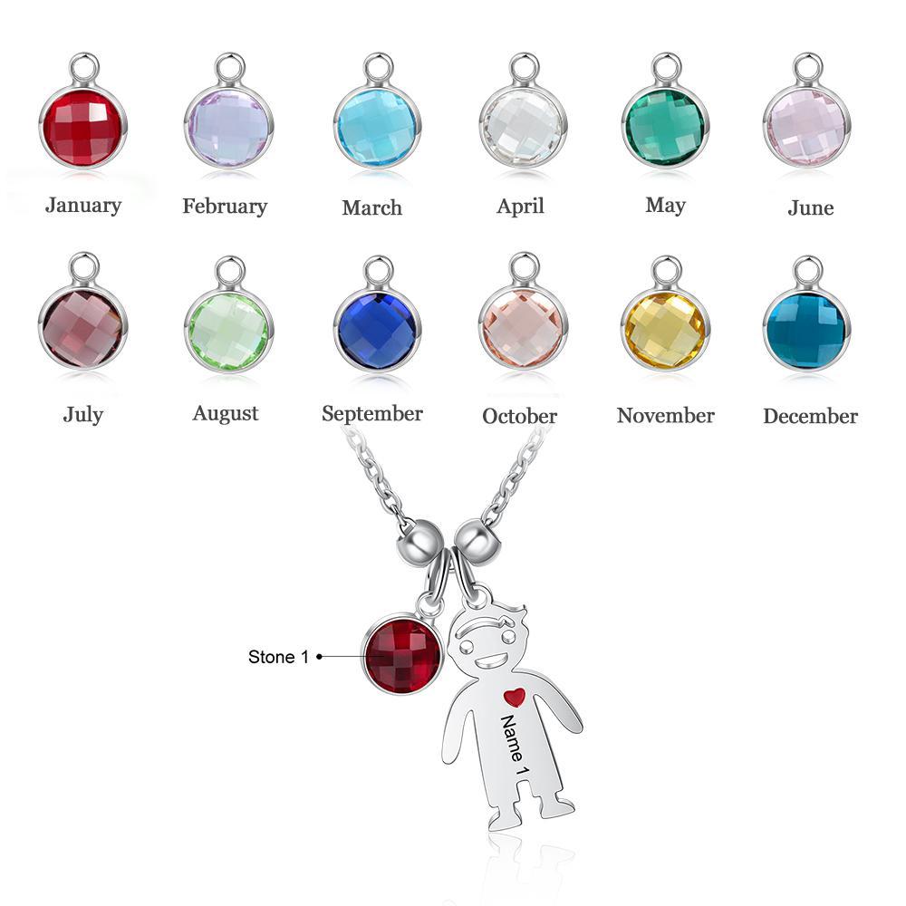 Personalised Kids Charm Necklace With 1 Birthstone Engraved Names Gift For Mother