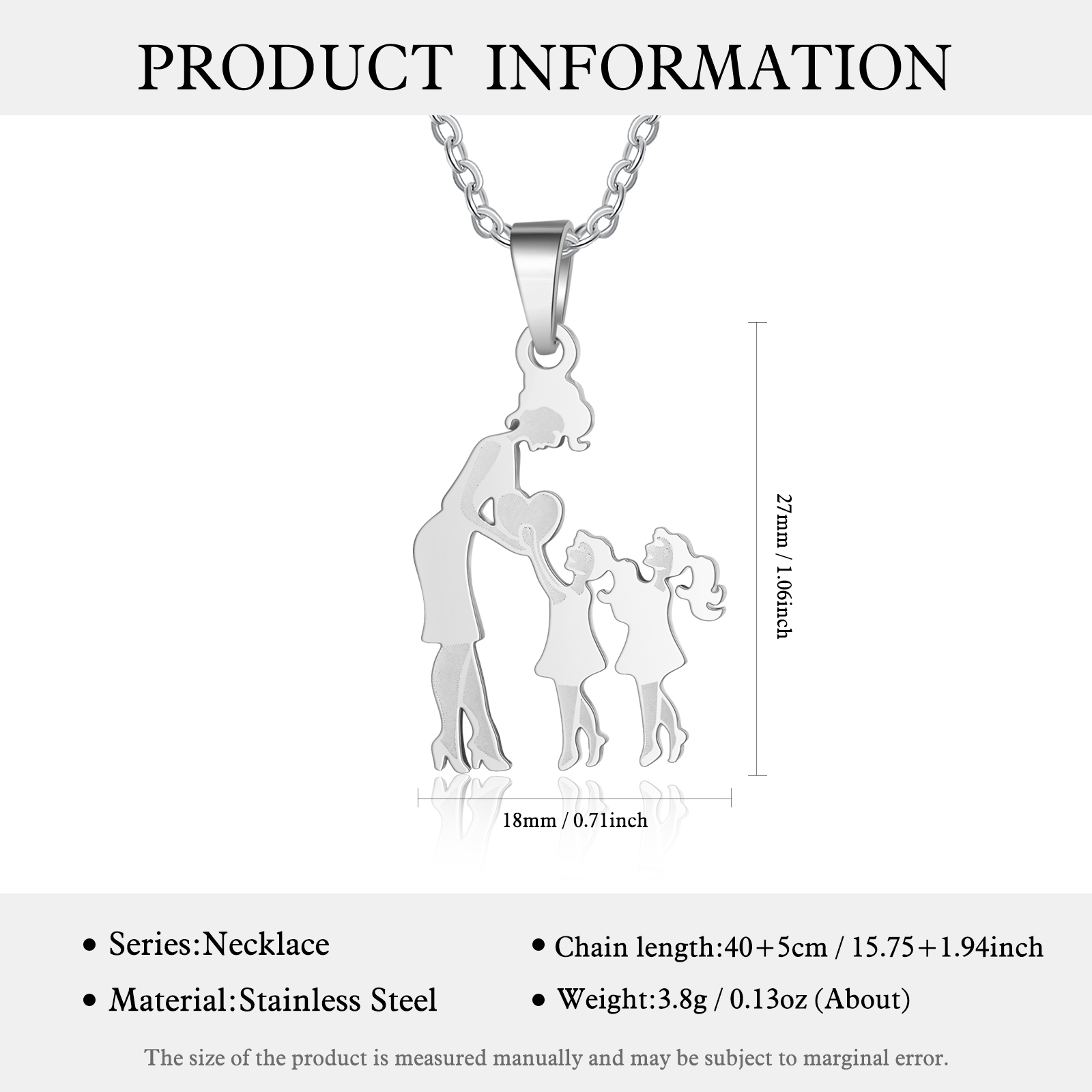 Mother and 2 Kids Necklace With Premium Rotating Rose Box, Silhouette Necklace Love Necklace for Grandma/Nana/Nan