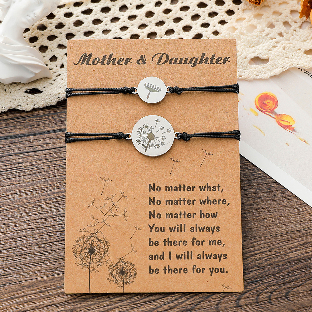 2 Pcs Mother and Daughter Dandelion Adjustable Bracelets Set, Bracelet Gift With Gift Card Set For Kids