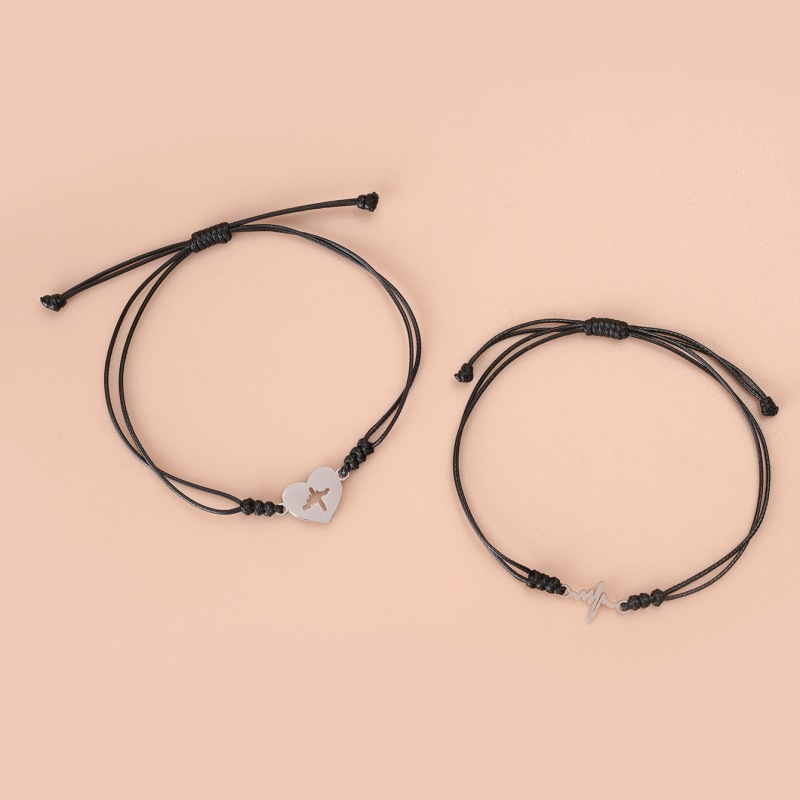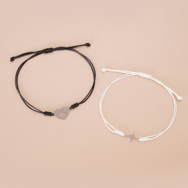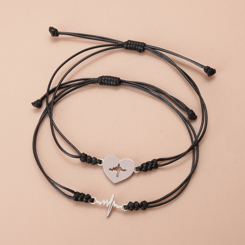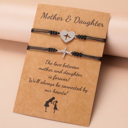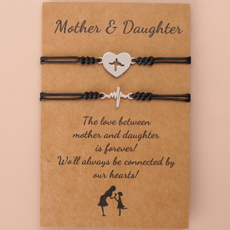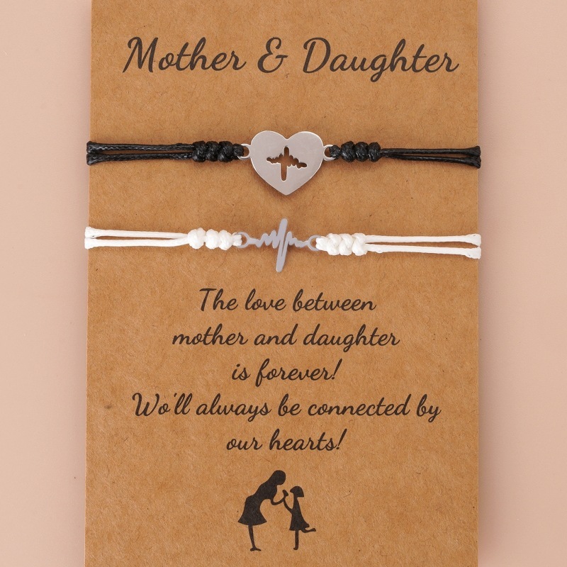 Mother and Daughter Love ECG Bracelet Set with Warm Card, Adjustable Bracelet Back To School Gift With Gift Card Set For Kids