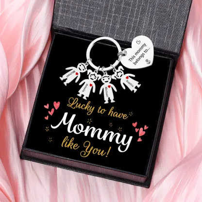 Mother's Day Gifts Personalised Heart Keyring With 4 Kid Charms "This Mummy/Mommy Belongs to" Set With Gift Box For Her