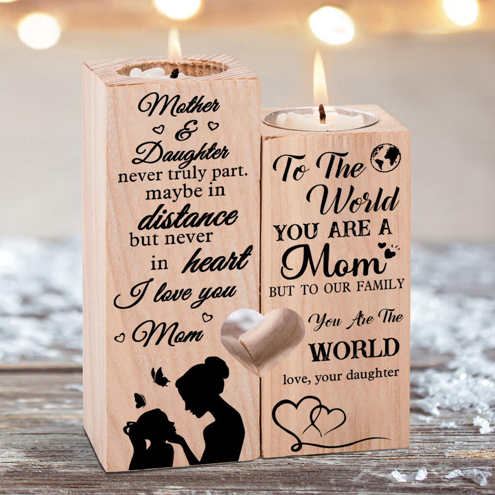 Mothers Gifts Mother and Daughter Candle Holder Wooden Candlestick "Mother & Daughter are never truly apart"