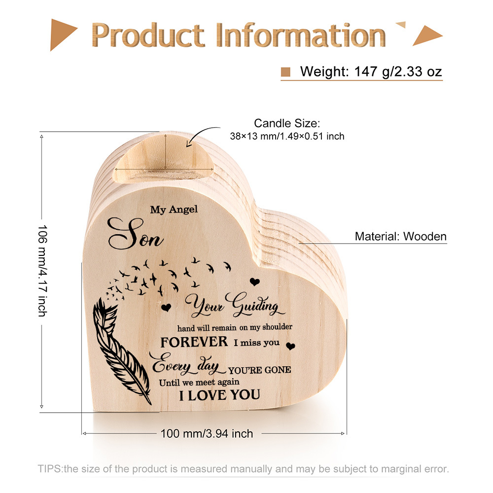 My Angel Son Wooden Heart Candle Holder Memorial Candlesticks "Until we meet again"
