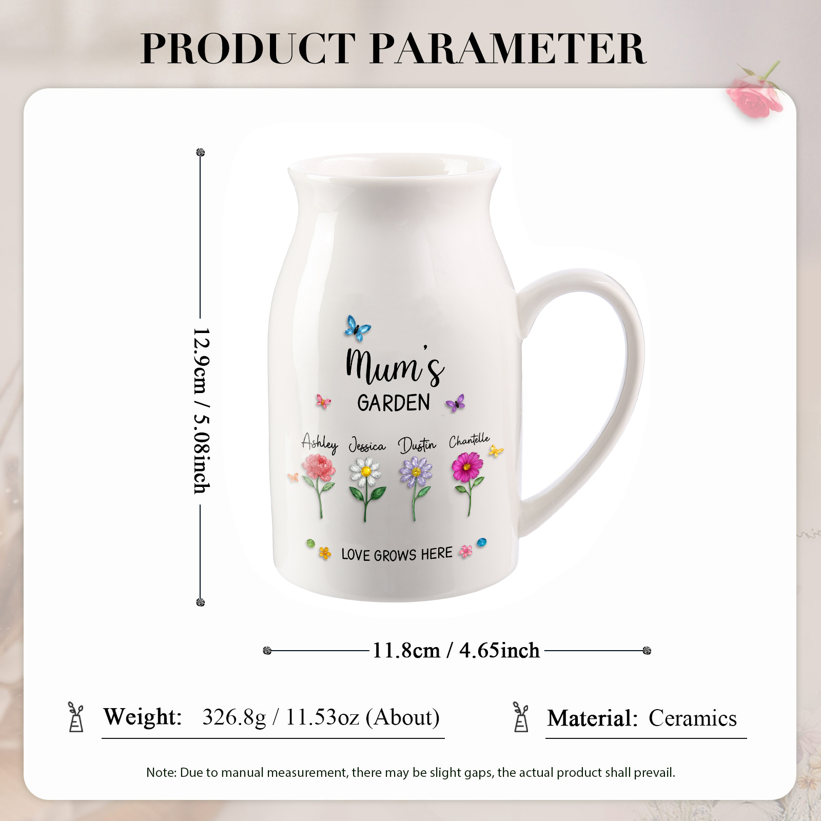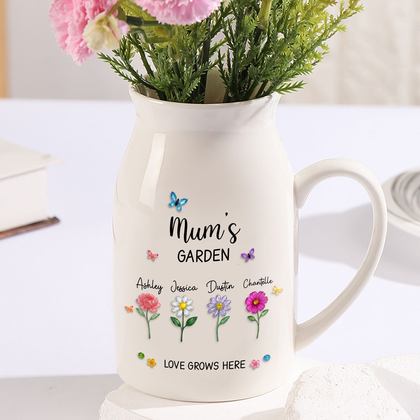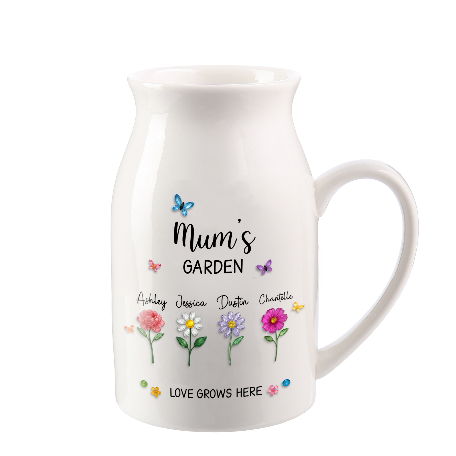 Personalised 1-10 Names Mum’s Garden Floral Ceramic Jug Vase