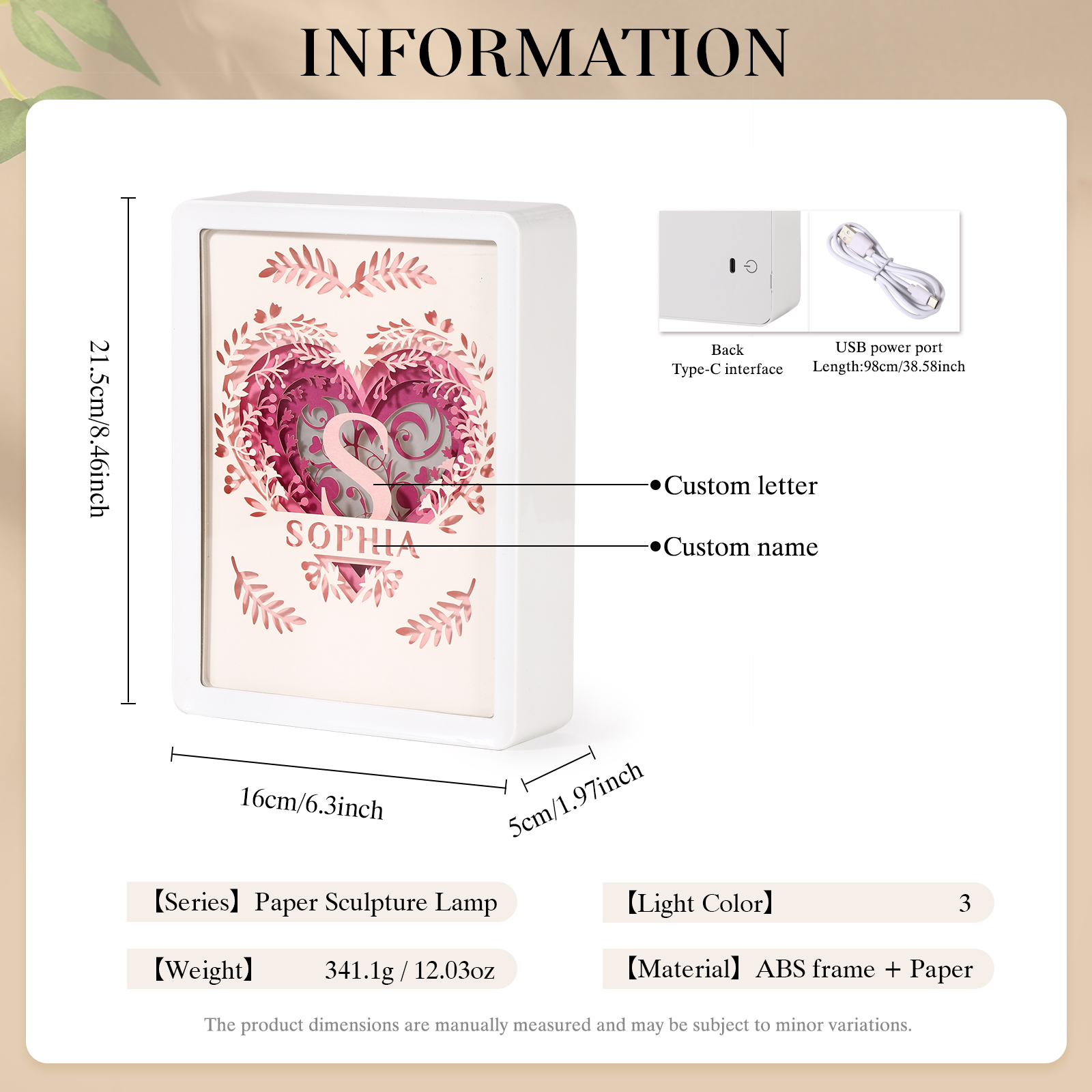 Personalised 3D Paper-Cut Heart Floral Night Light