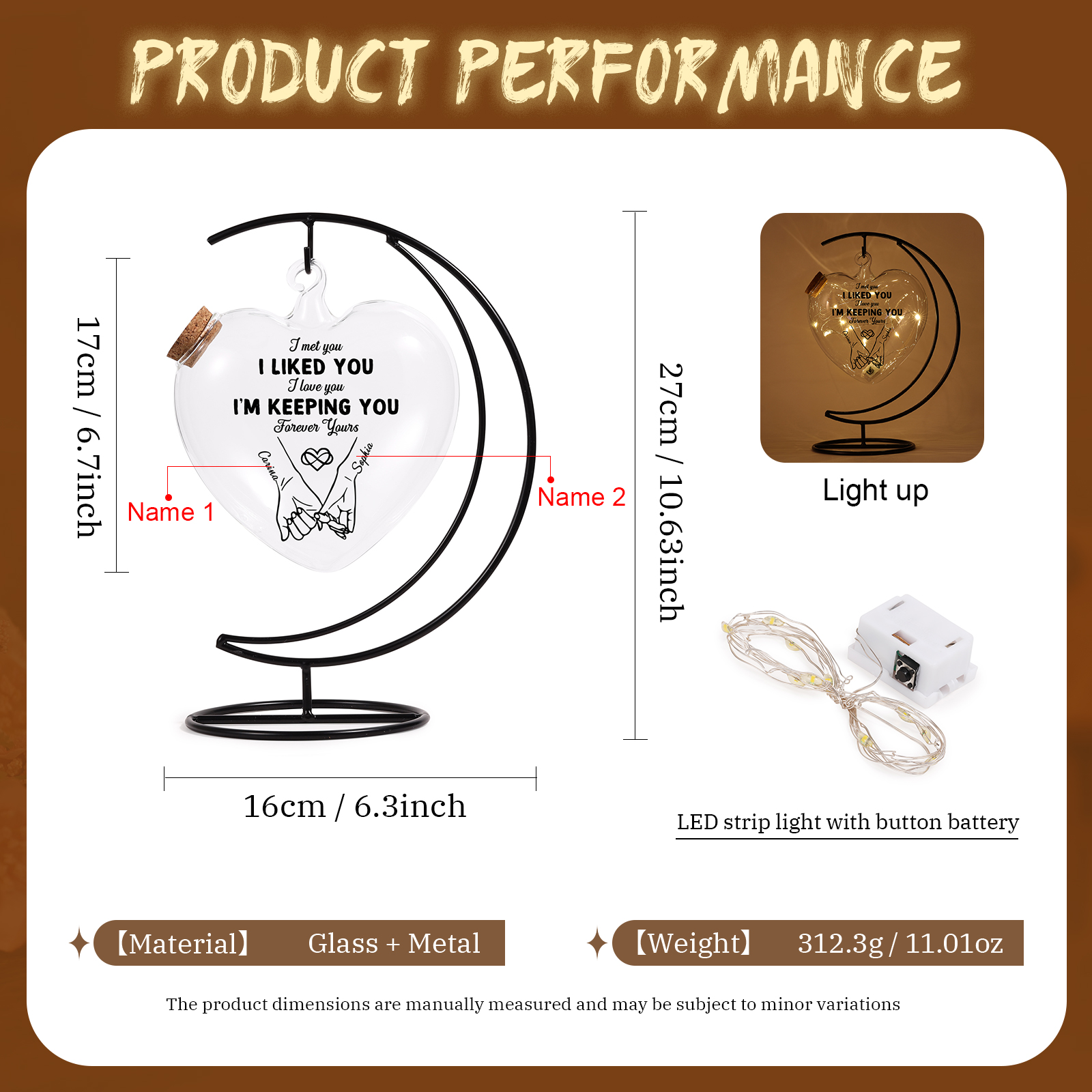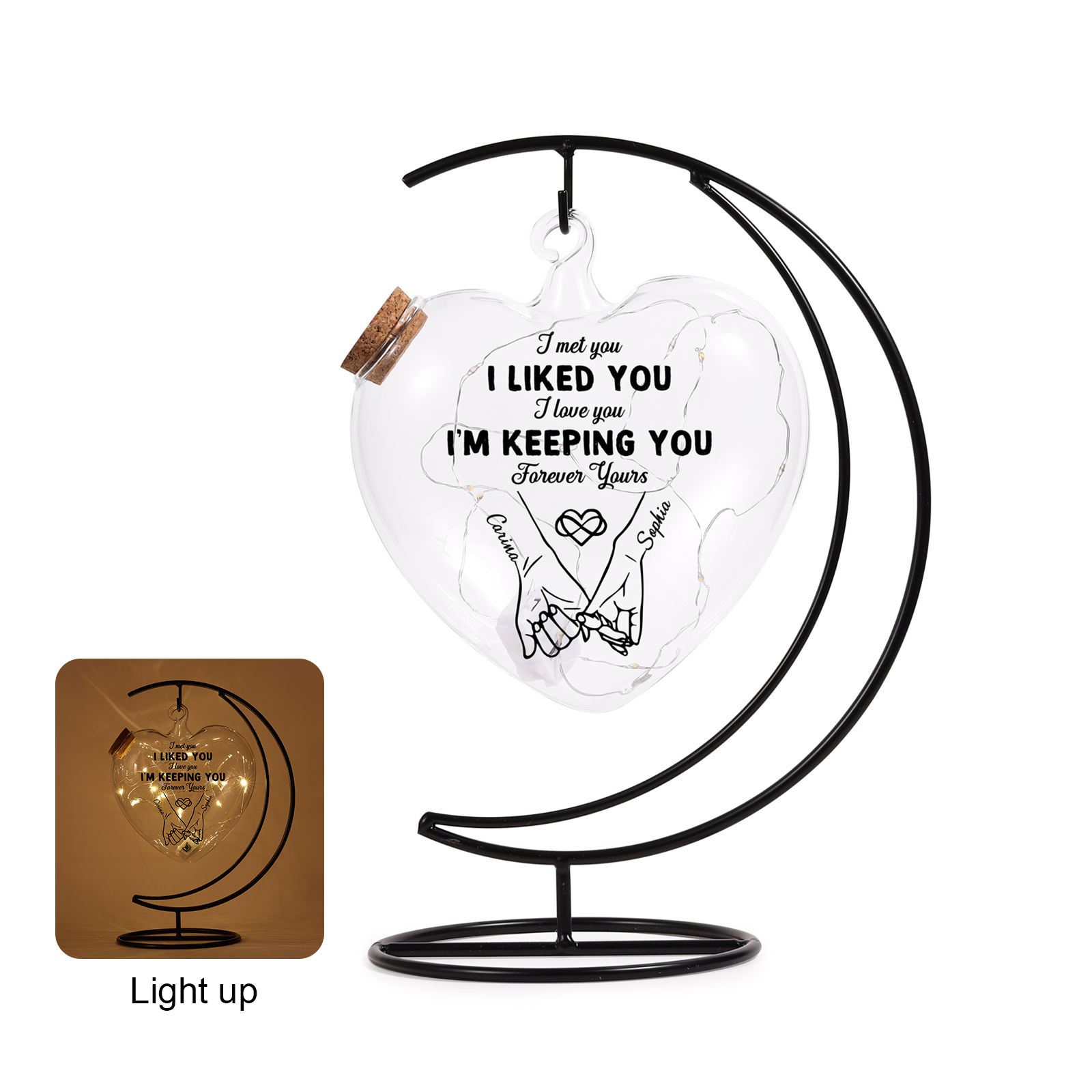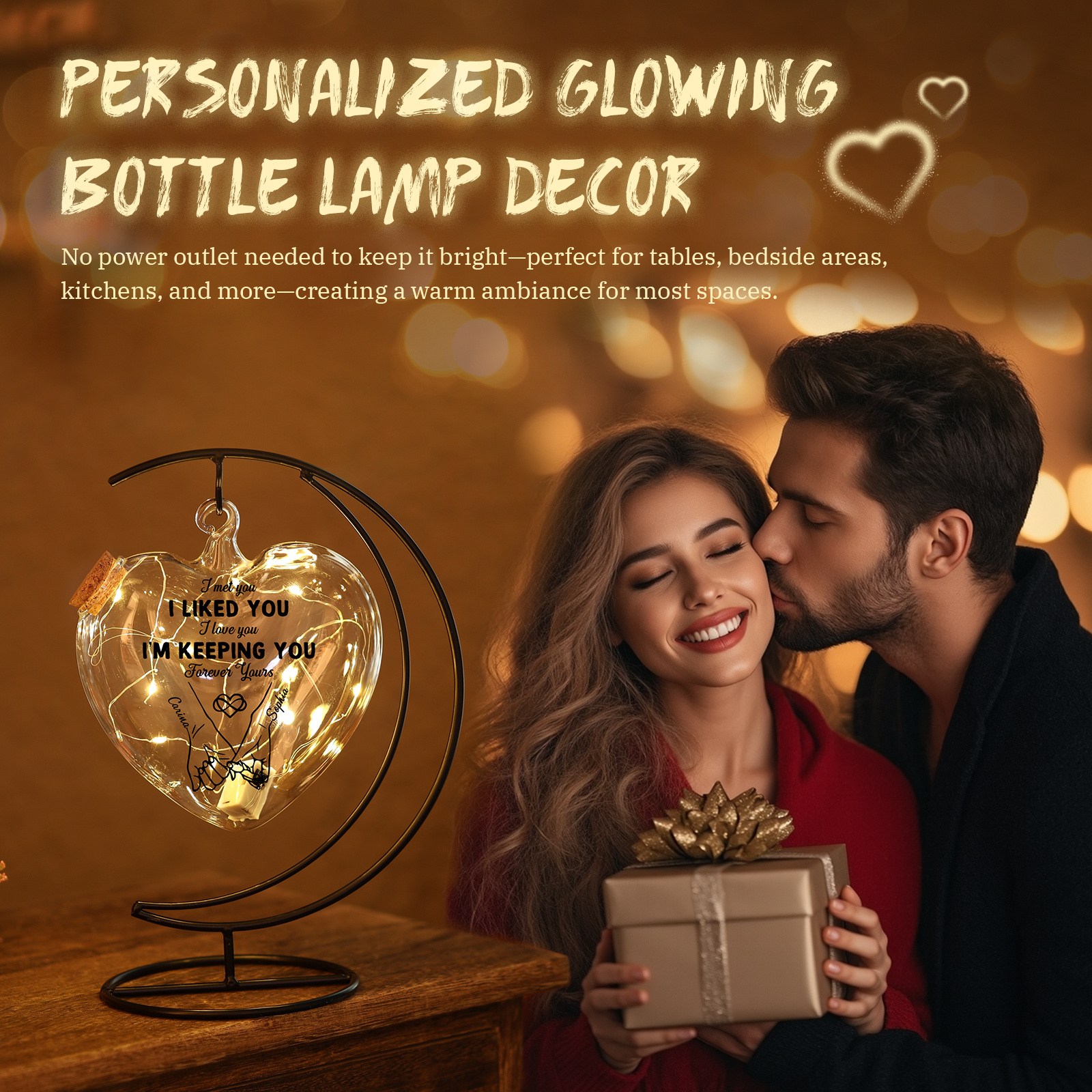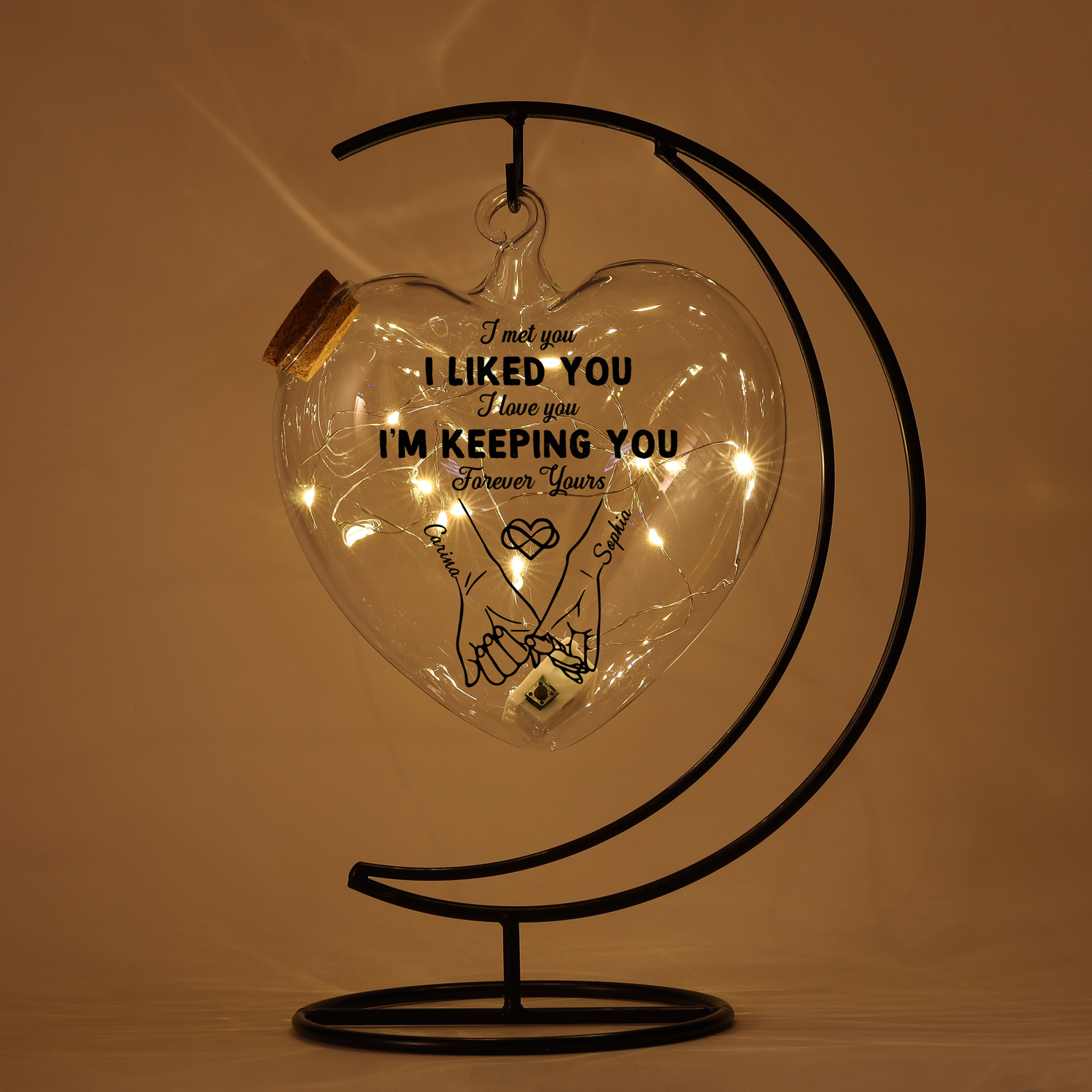 Personalised Couple Heart Glass Fairy Light Moon Lamp
