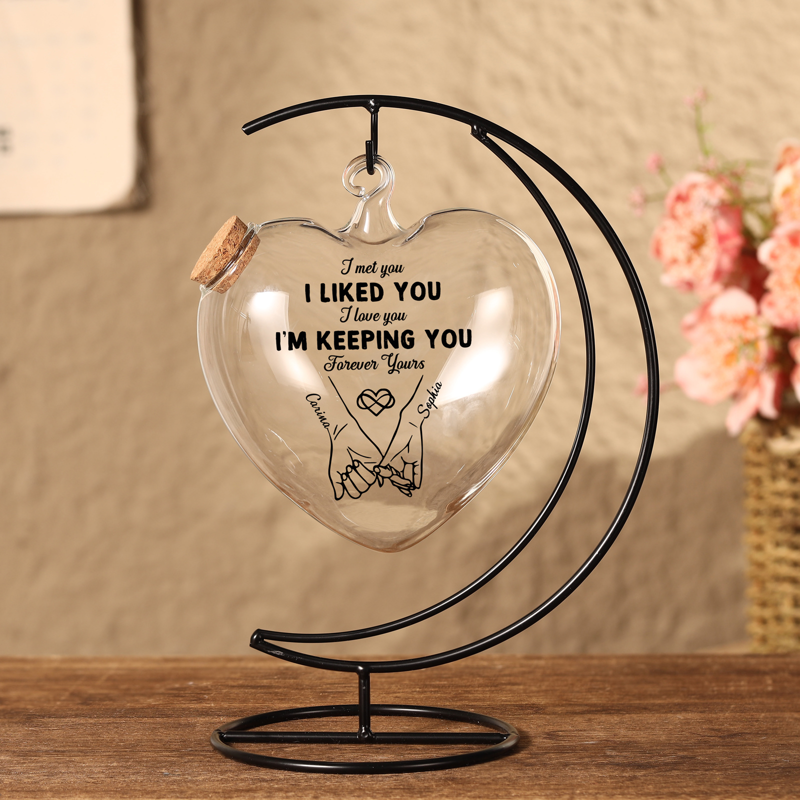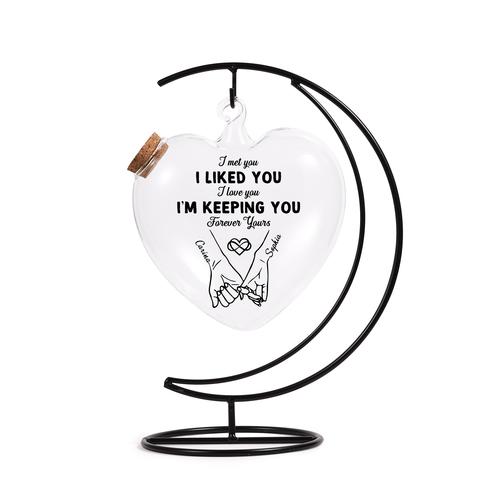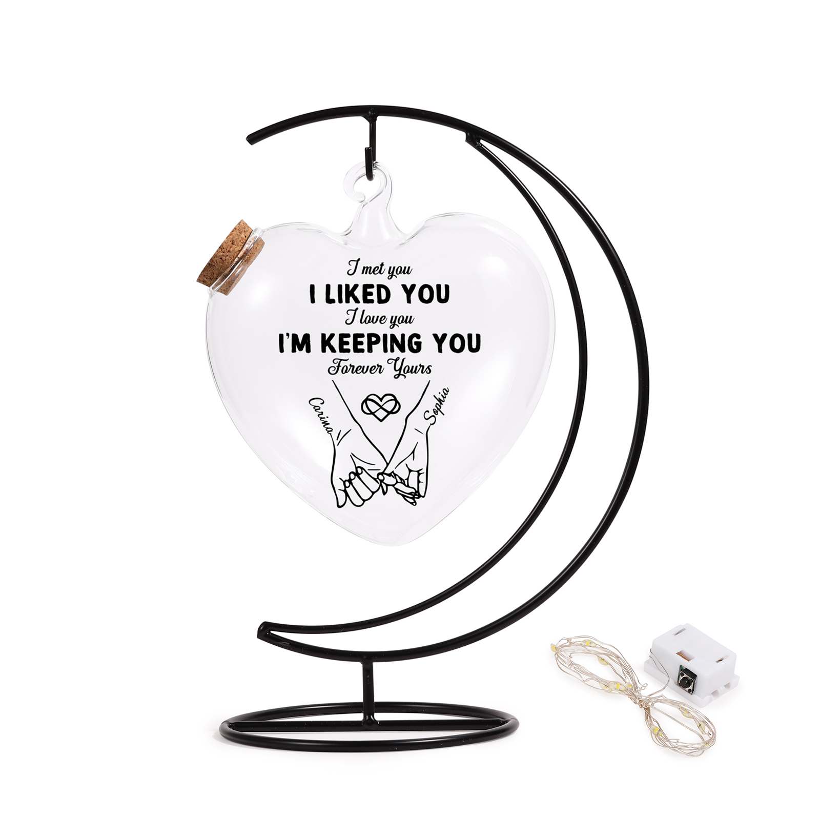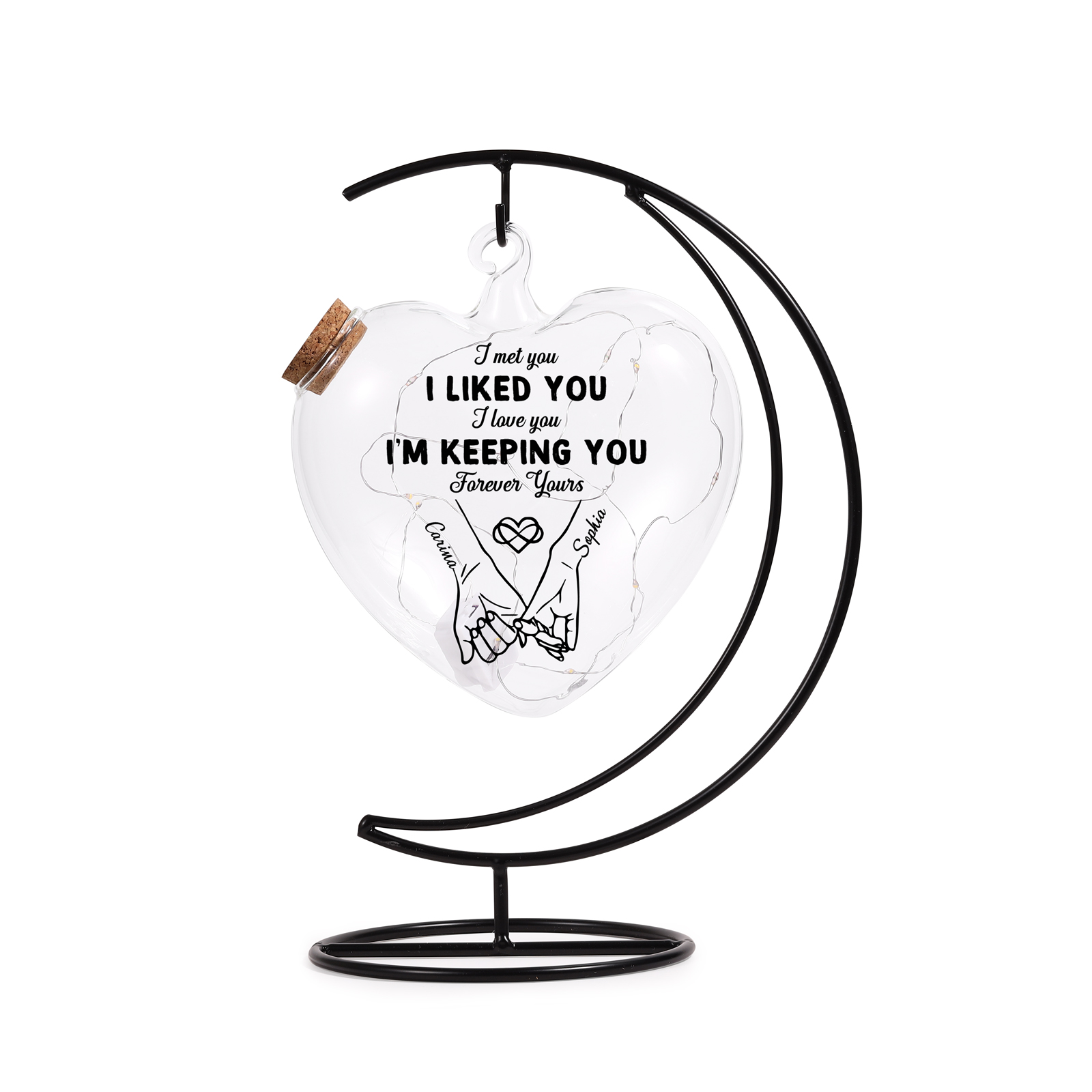 Personalised Couple Heart Glass Fairy Light Moon Lamp