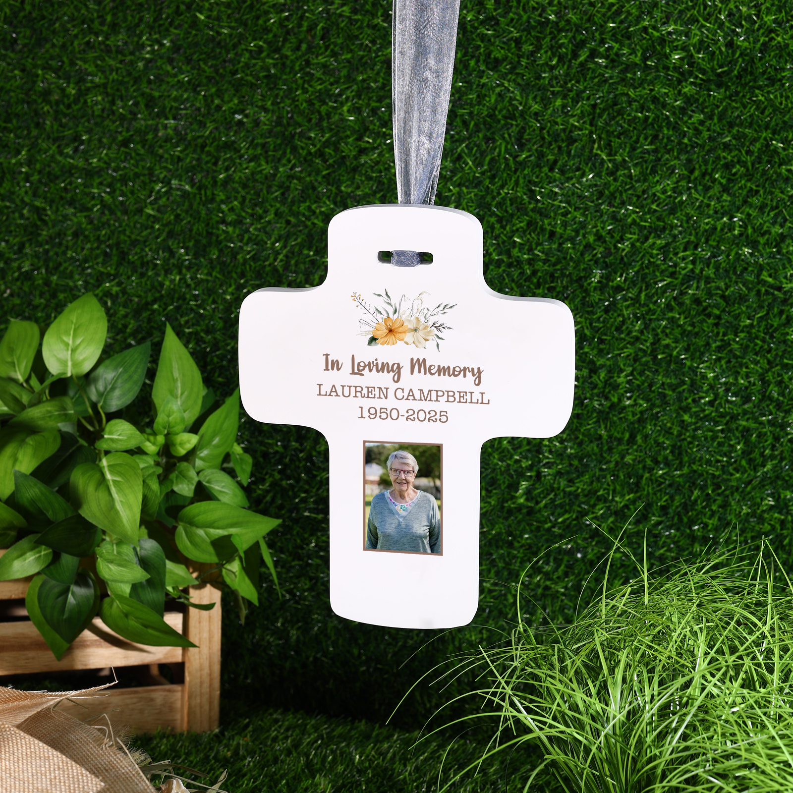 Personalised Floral Photo Memorial Hanging Cross