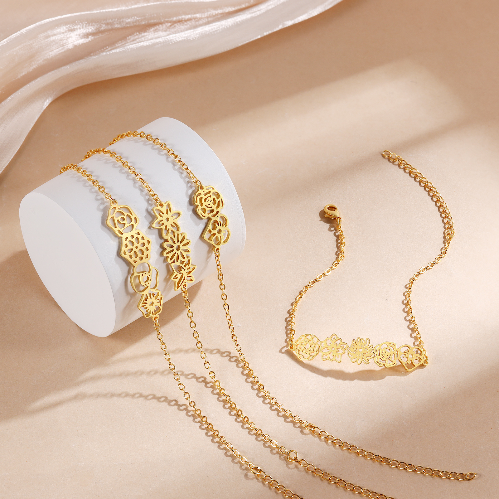 Personalised Gold Birth Flower Cutout Bracelet