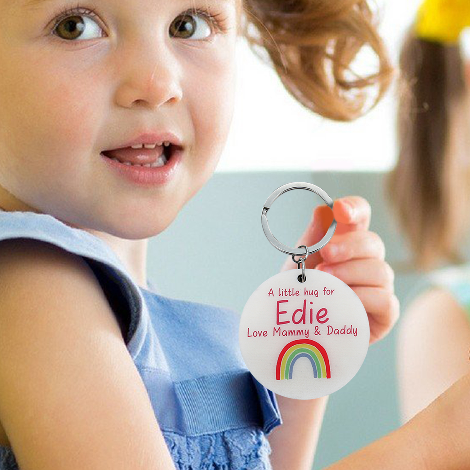 Personalised 1 Name Kids Stainless Steel Keyring, Custom Rainbow Keyring Accessories School Bag Accessories