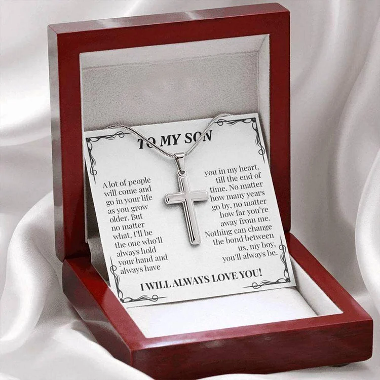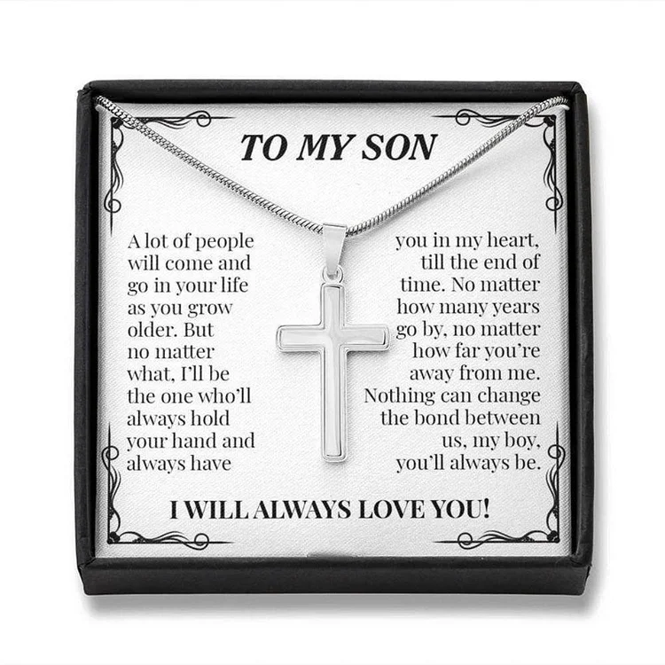 Personalised 1 Text To My Son S925 Silver Cross Necklace Set with Gift Card Gift Card-Custom Men Necklace Gift For Son-I Will Always Love You