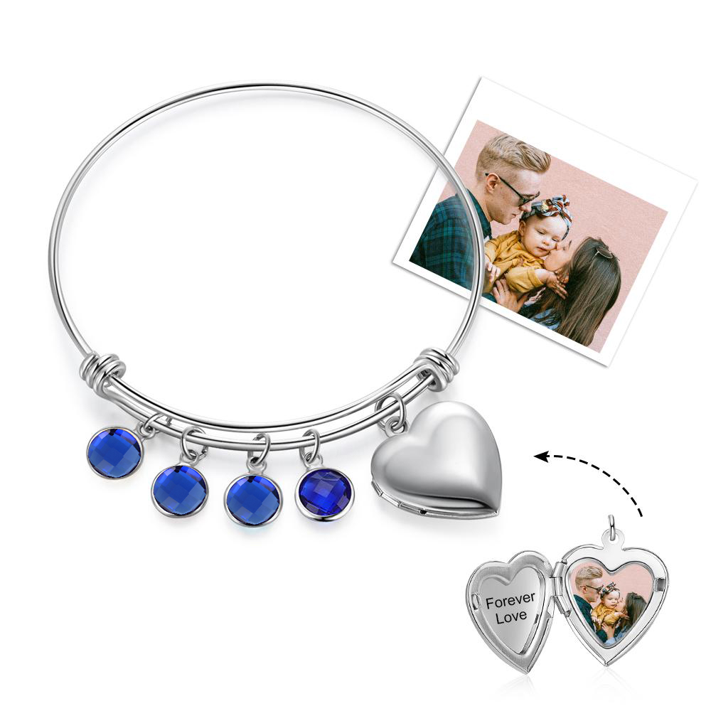 September Birthday Personalised Heart Photo Locket Bracelet With Birthstones Custom Photo Bracelet Gifts For Her