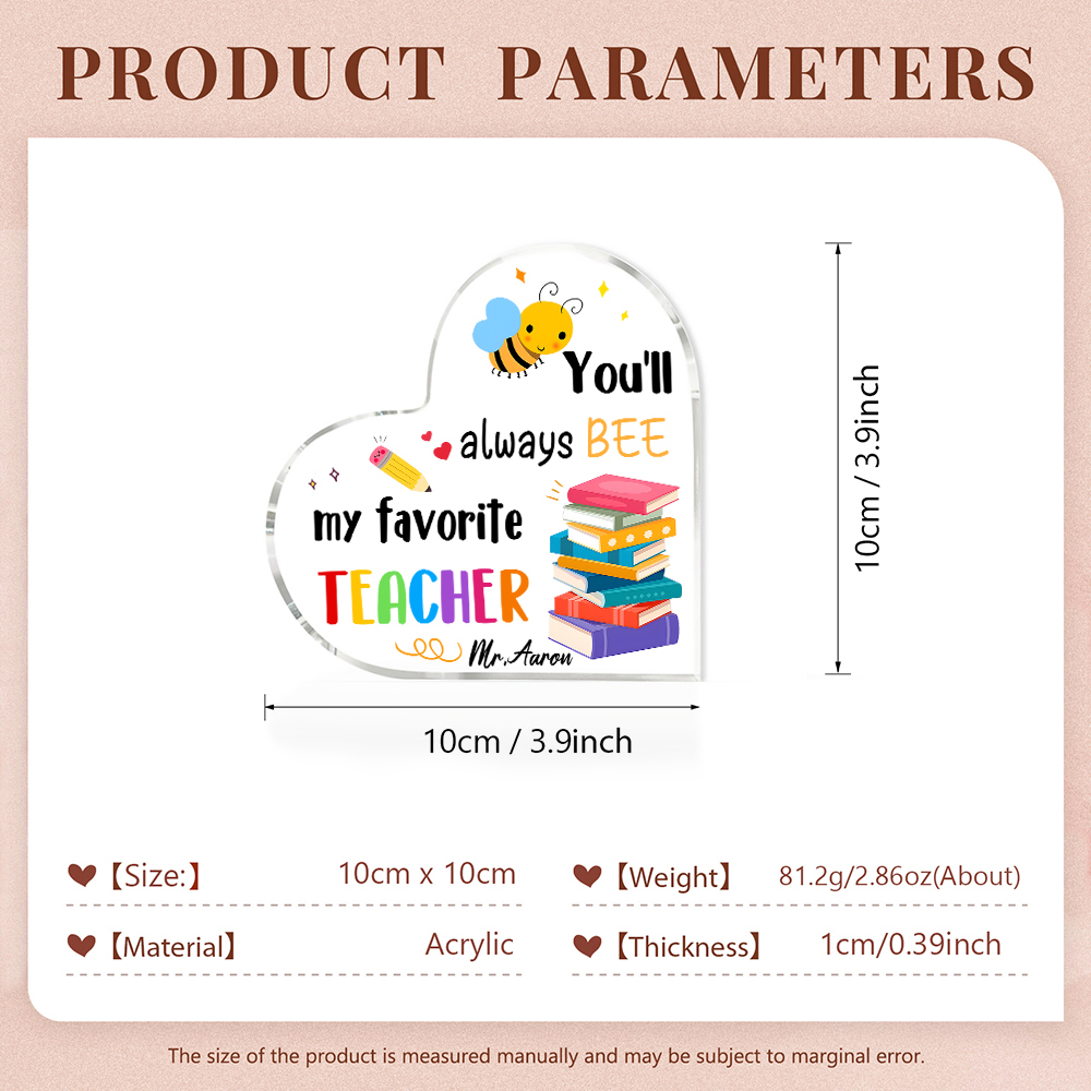 Personalised Acrylic Heart Keepsake Custom 1 Name Ornament Gift for Him/Her - You'll Always "BEE" My Favorite Teacher