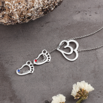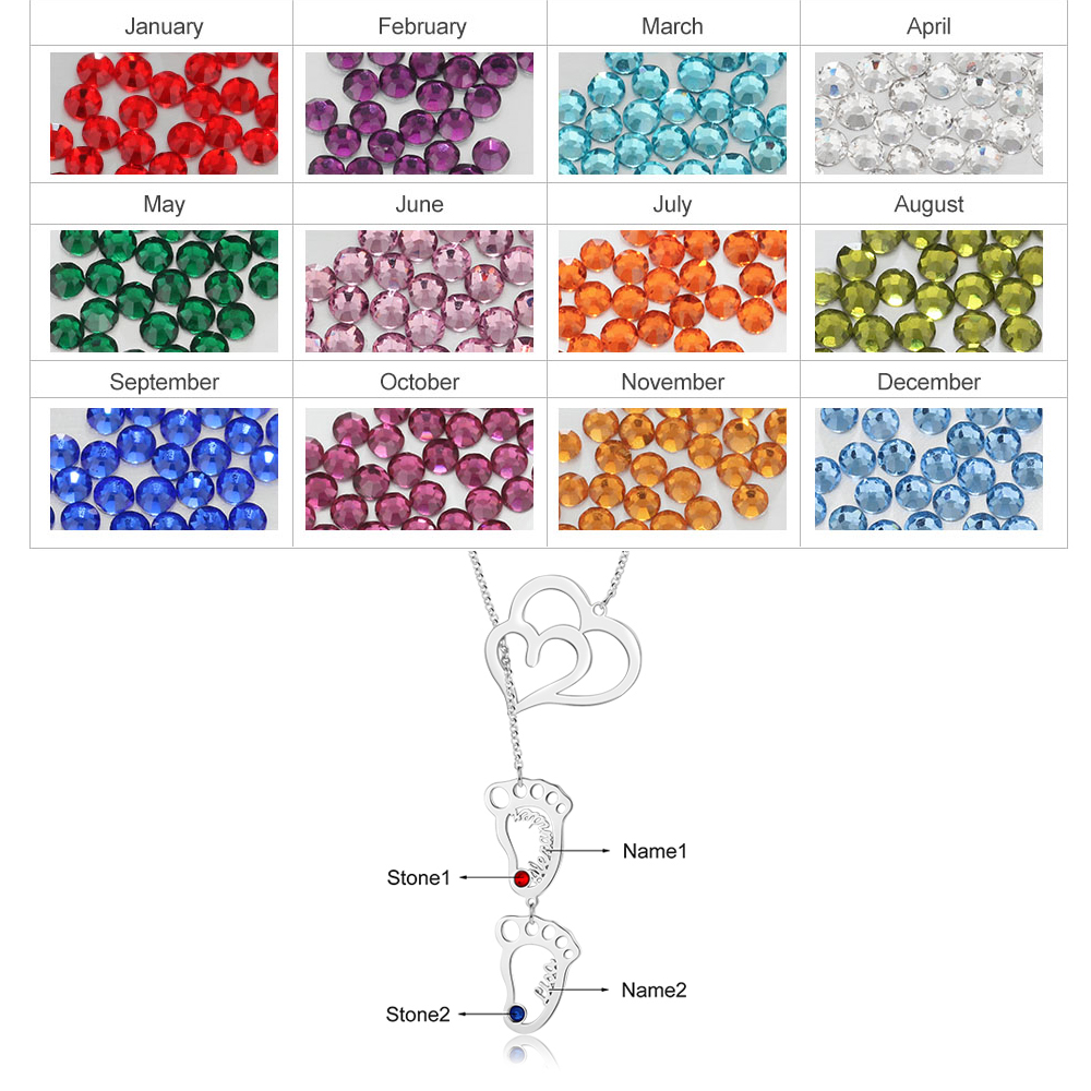 Personalised Baby Foot Necklace With Birthstones Custom 2 Names Necklace Gift For Mother