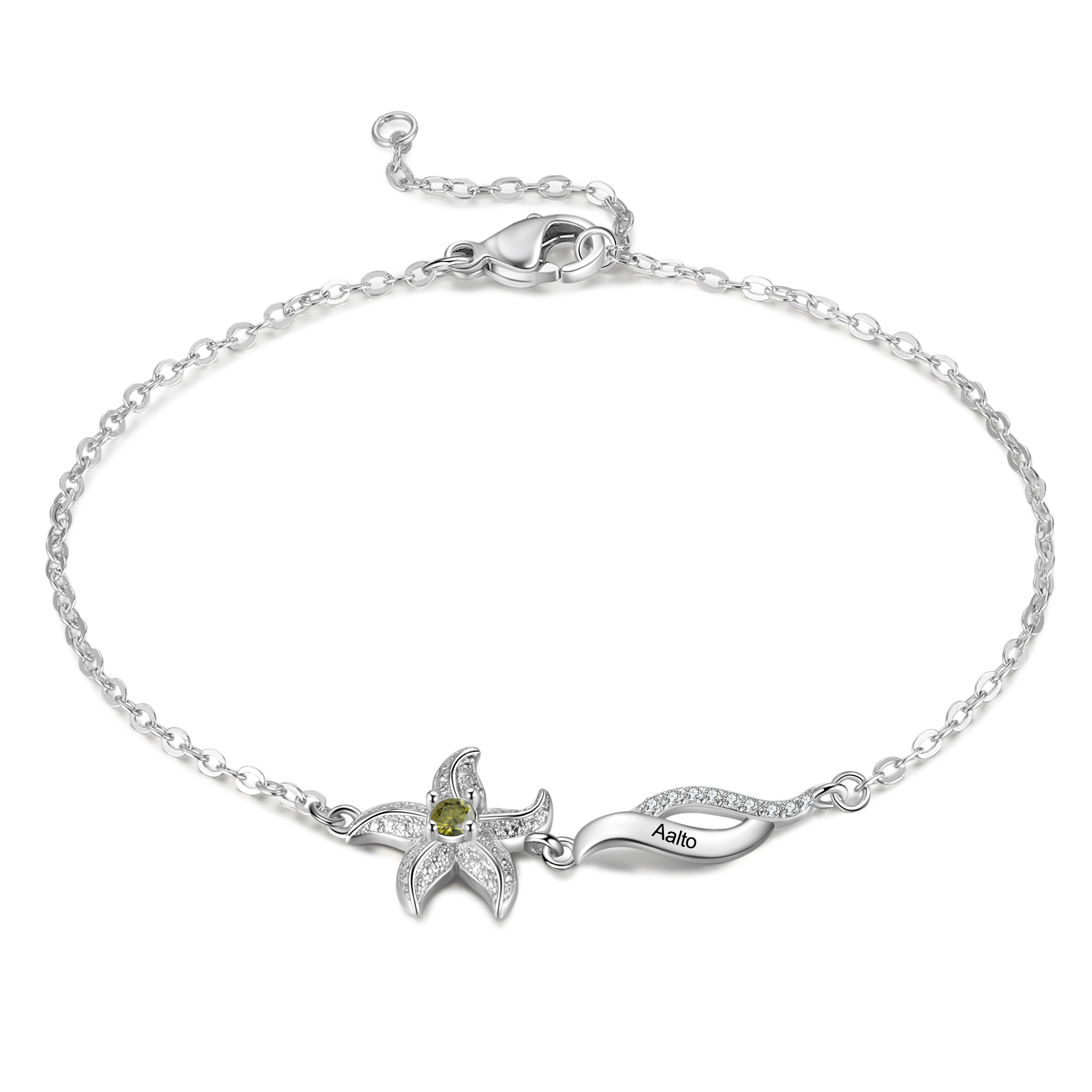 1 Name-Personalised Starfish Bracelet With 1 Birthstone Engraved Names Bracelet Gift For Women