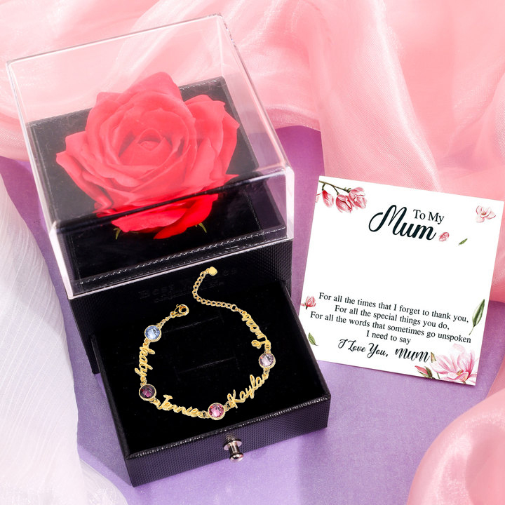 Personalised Bracelet With Birthstone Set With Rose Gift Box Custom 4 Names Bracelet Gift For Women
