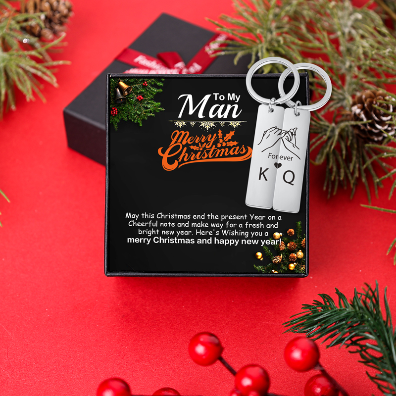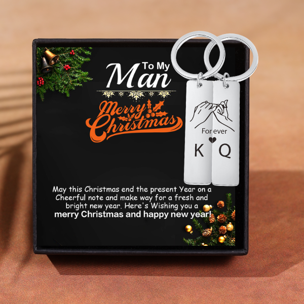 Personalised Couple Keyring With Gift Box-Custom Christmas Couple Keyring with Letters