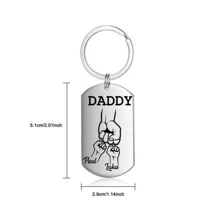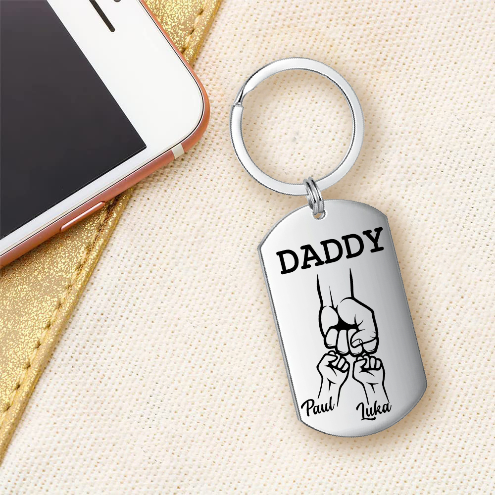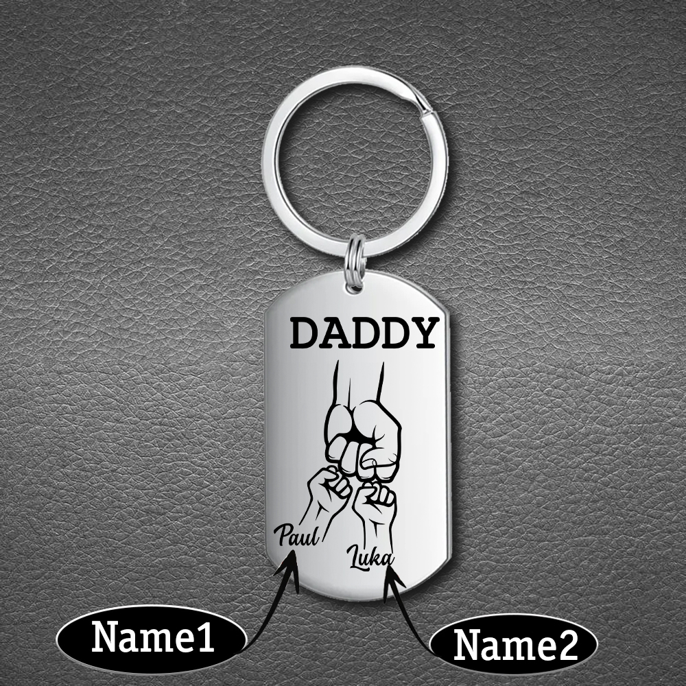 2 Kids' Names-Custom Daddy Fist Bump Keyring Father's Day Gifts