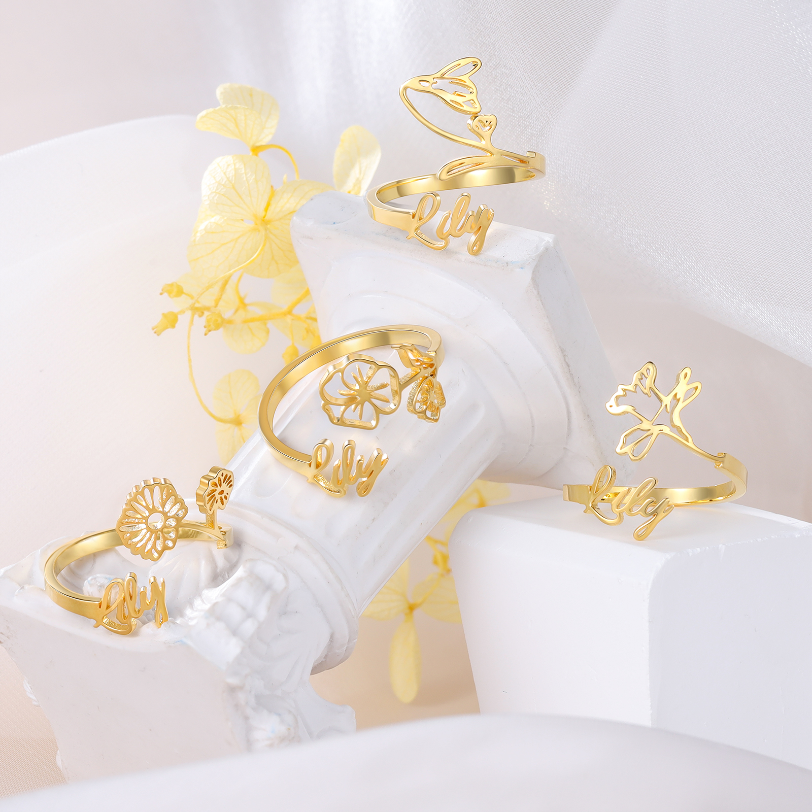 Personalised December Birth Flower Ring With Name Gifts For Her