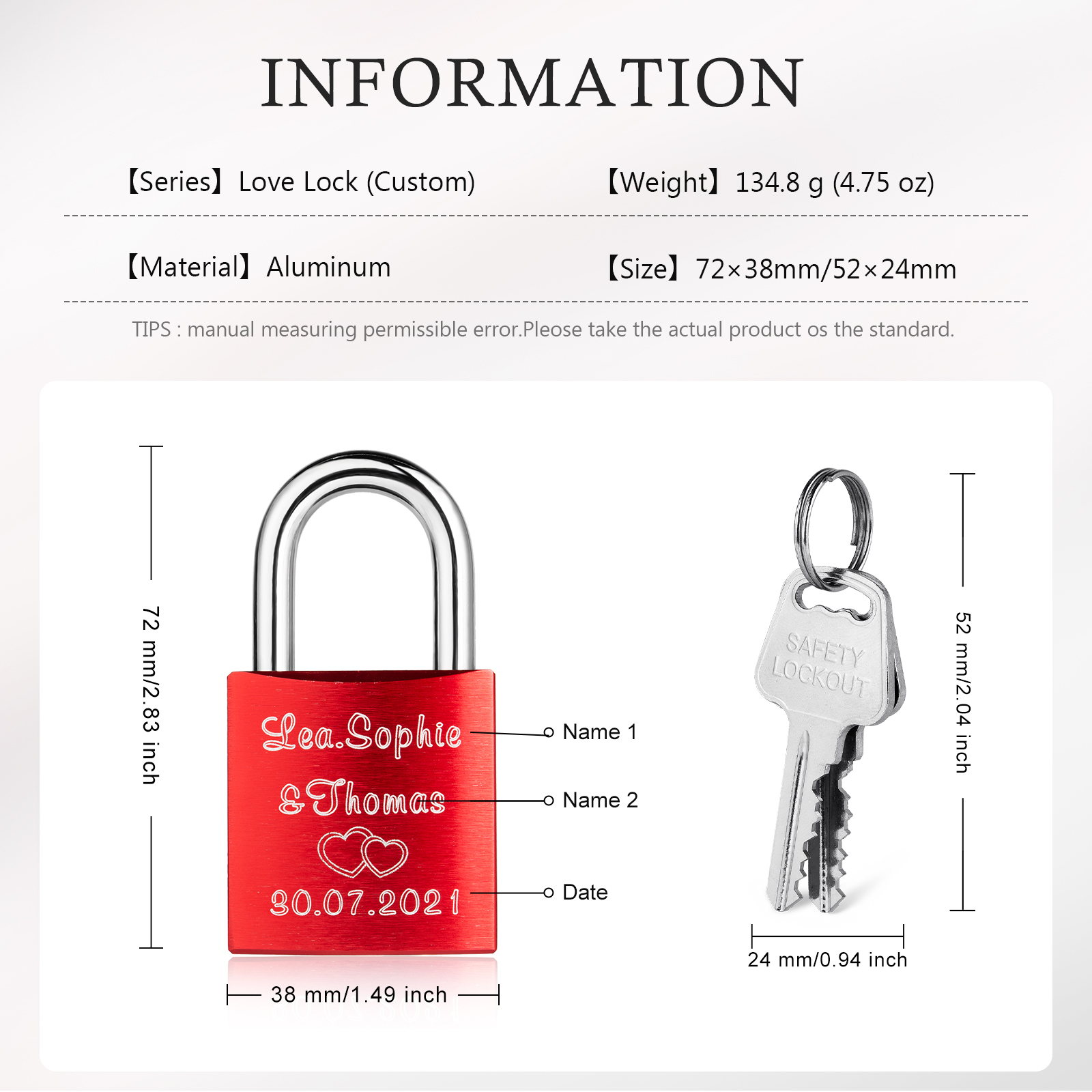 • Personalization: 2 Names, 1 Date