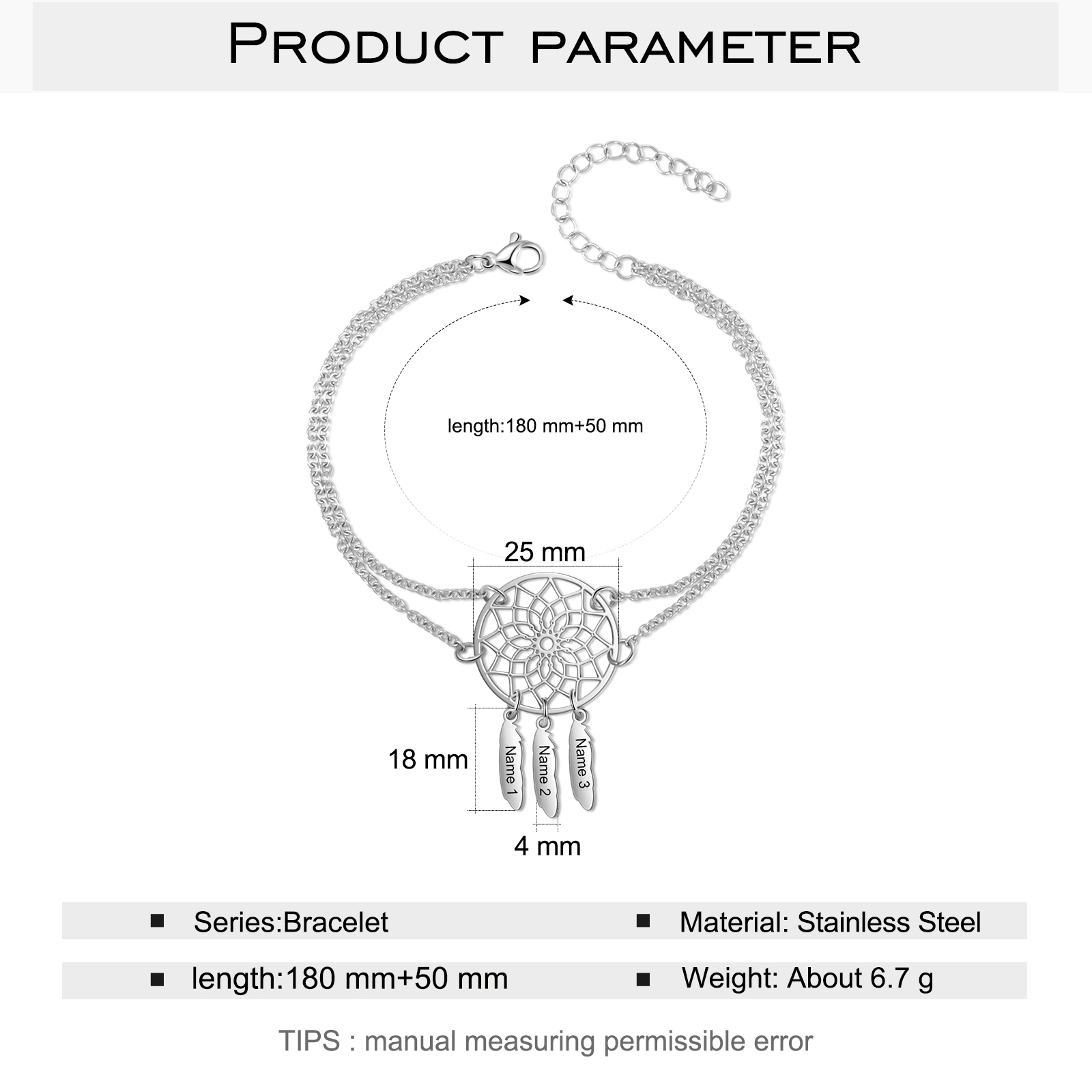 Personalised Dream Catcher 3 Names Bracelet For Ladies