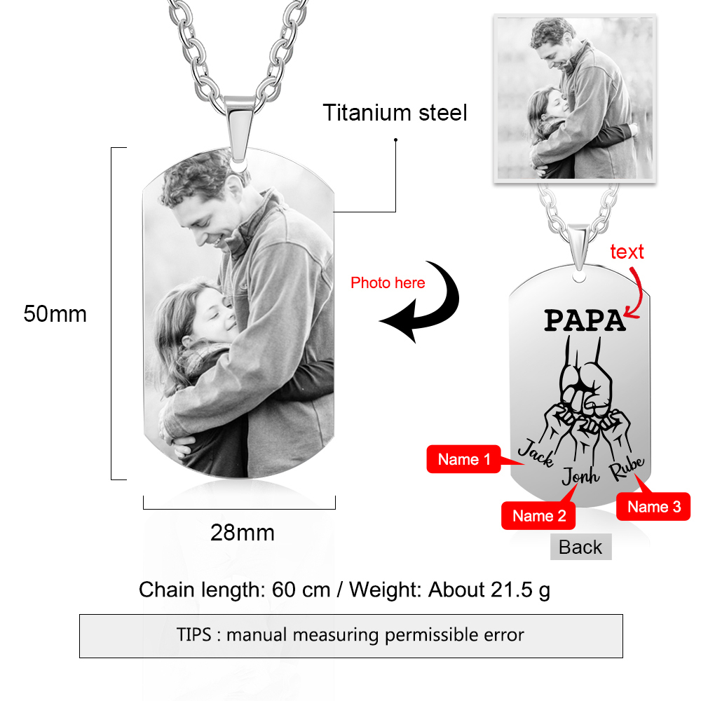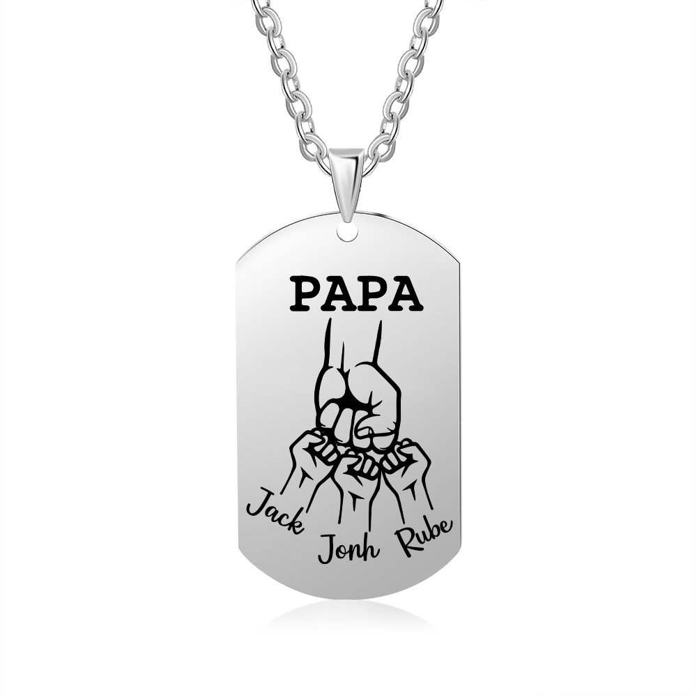 Personalised Fist Bump Necklace with 3 Kids' Names Custom Photo Necklace For Father