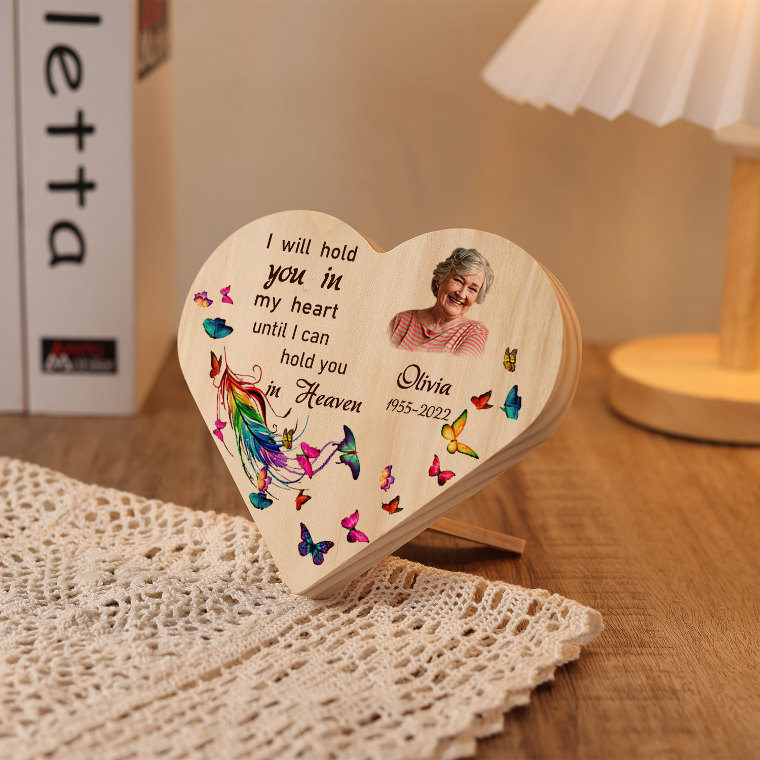 Personalised Memorial Wood Heart Ornament-Custom Heart Photo Wooden Desktop Decoration-I Will Hold You In My Heart