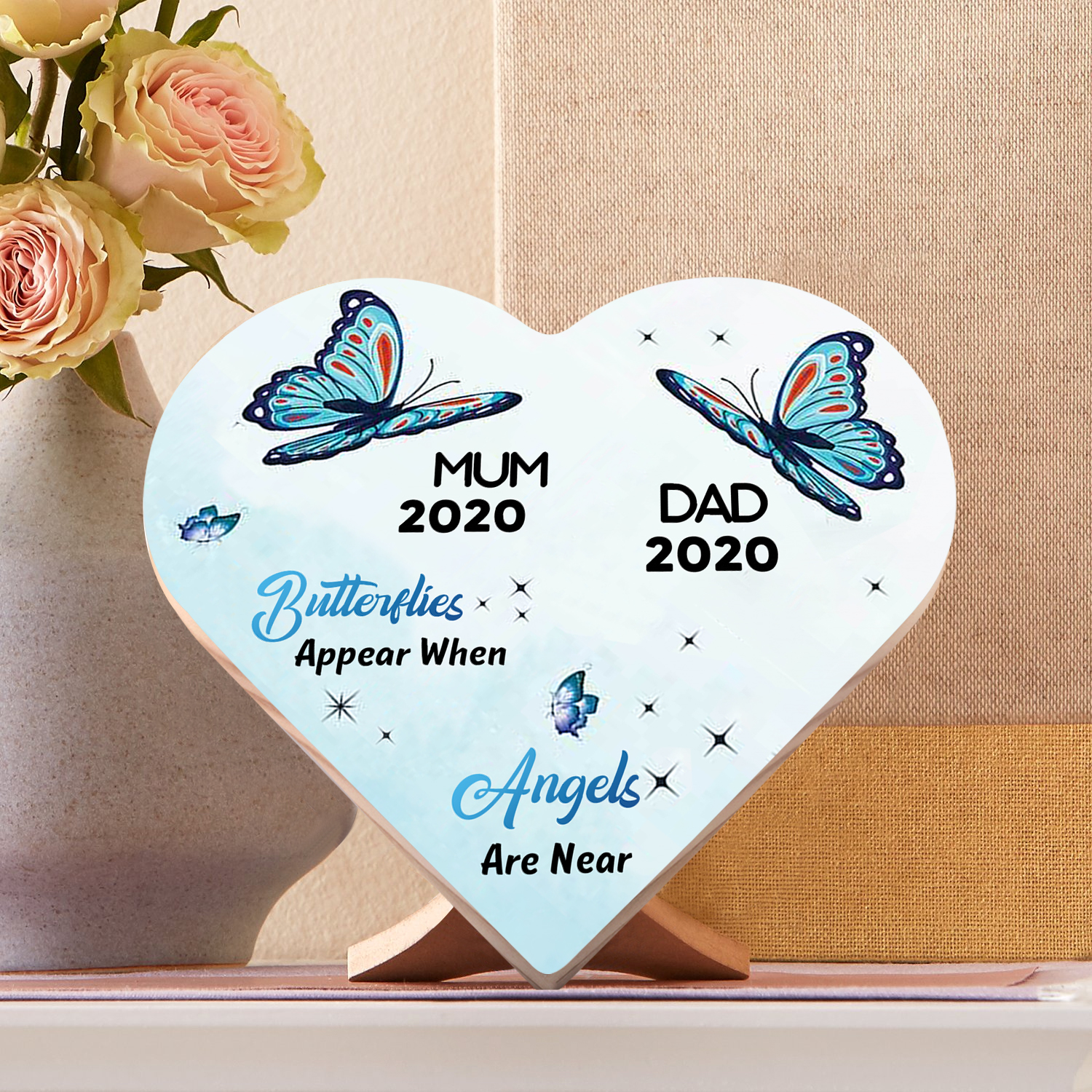 Personalised Memorial Butterfly Wood Heart Ornament-Custom Heart Wooden Desktop Decoration-Butterflies Appear When Angels Are Near