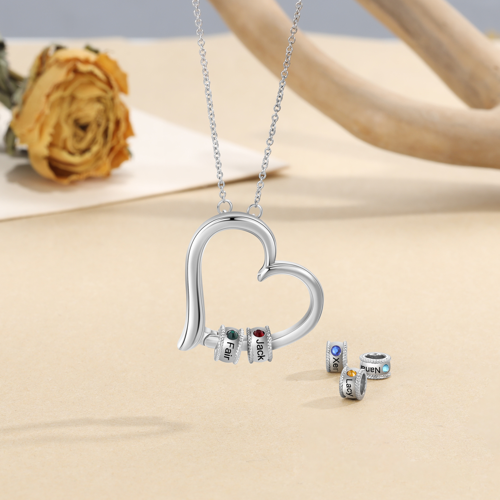 2 Names-Personalised Heart Necklace Set With Premium Rotating Rose Flower Gift Box-Custom Necklace With 2 Birthstones Engraved Family Names Necklace Gift For Her