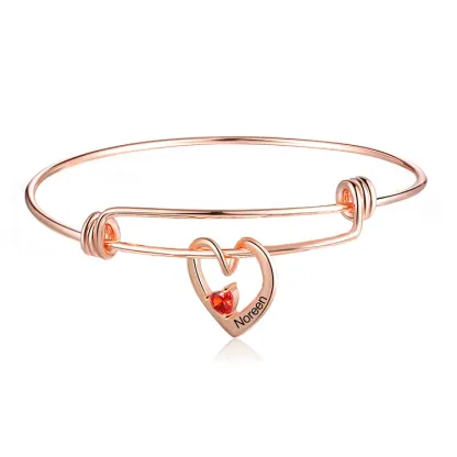 Personalised Heart Bracelet With 1 Birthstones Engraved Names Bracelet Gift For Women
