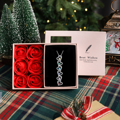 6 Names-Personalised Heart Necklace Set With Rose Box-Custom Birthstone Necklace With 6 Birthstones Engraved Names Gift For Her