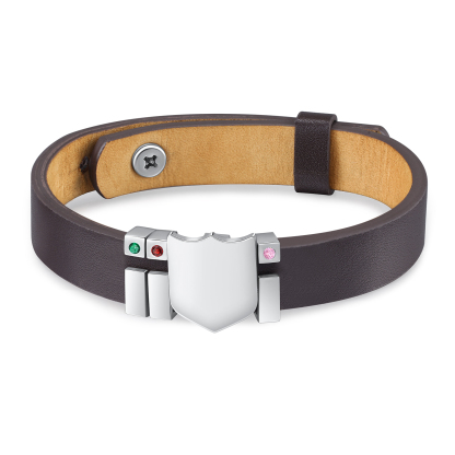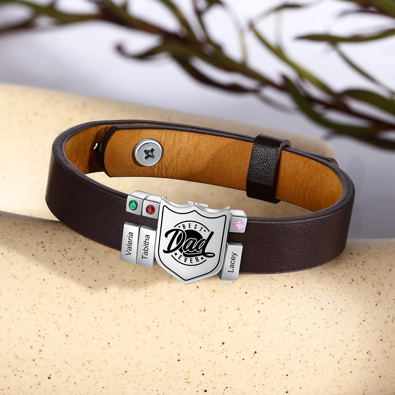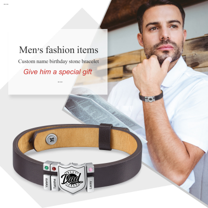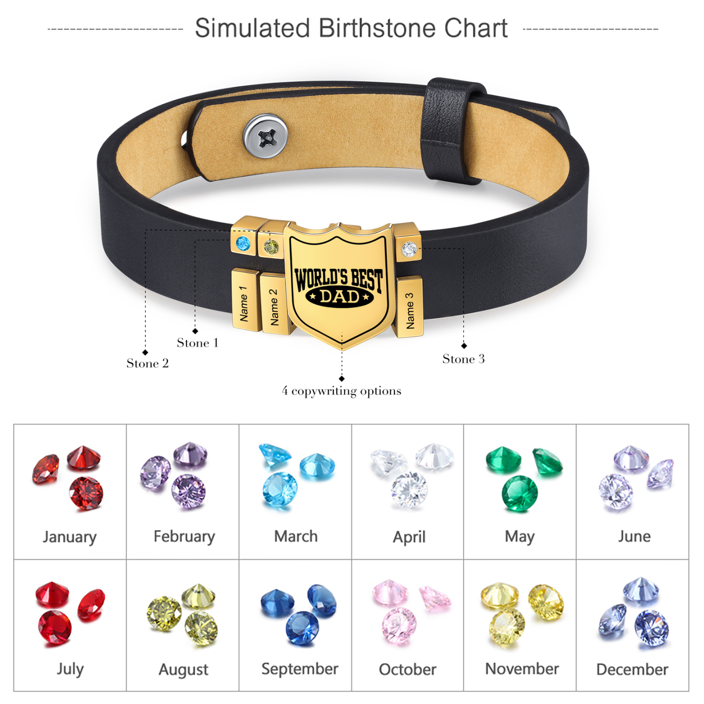 Personalised Leather Bracelet With 3 Birthstones Custom names Men's Bracelets Gifts For Father