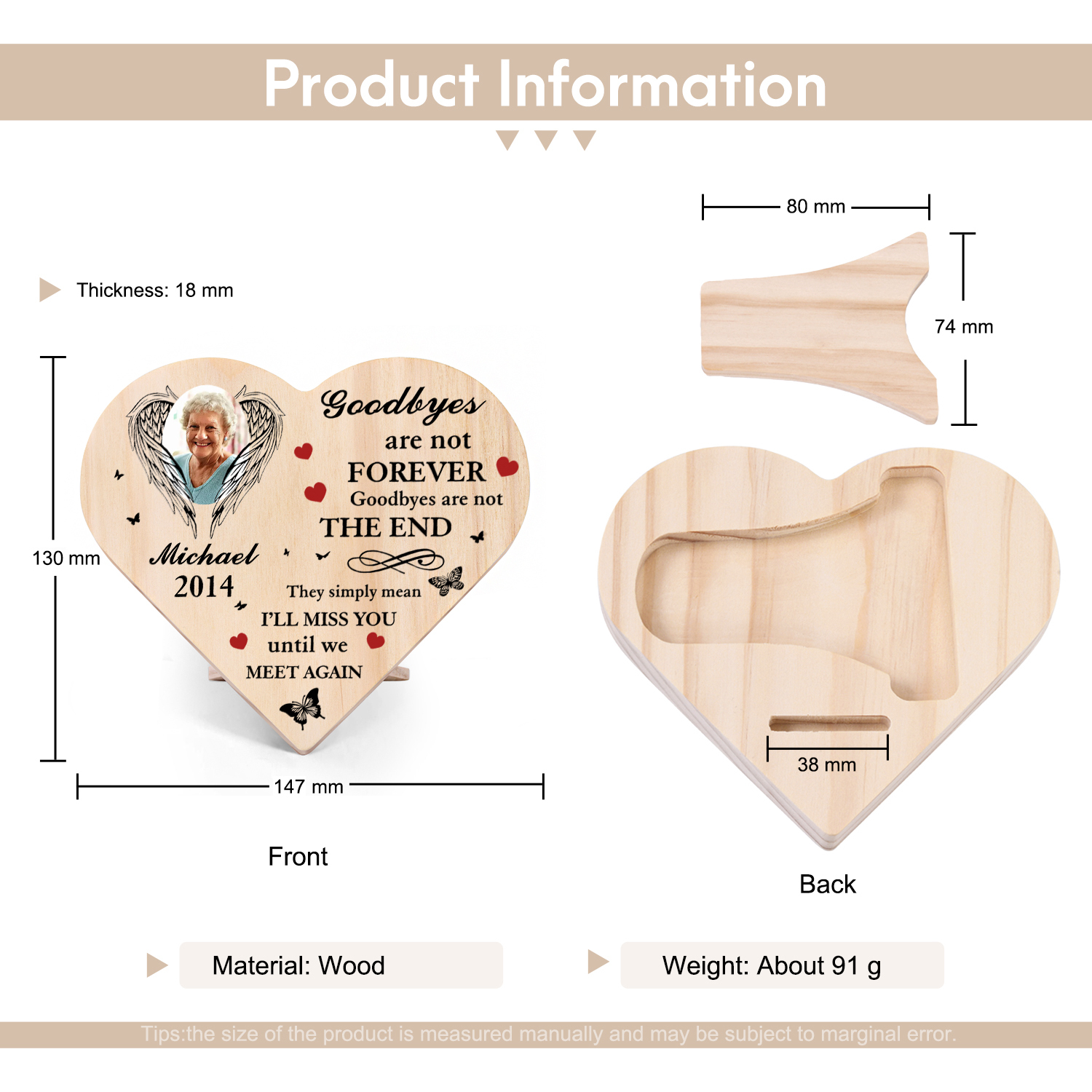 Personalised Memorial Wood Heart Ornament-Custom Heart Wooden Desktop Decoration-Those We Love Don't Go Away They Walk Beside Us Every Day