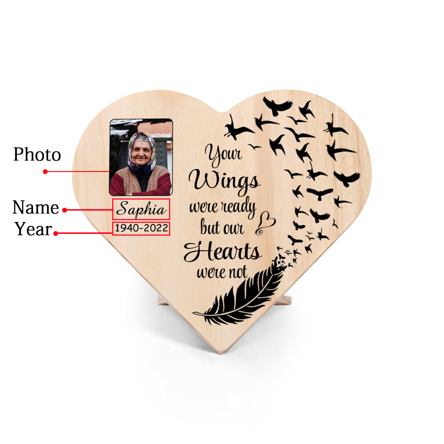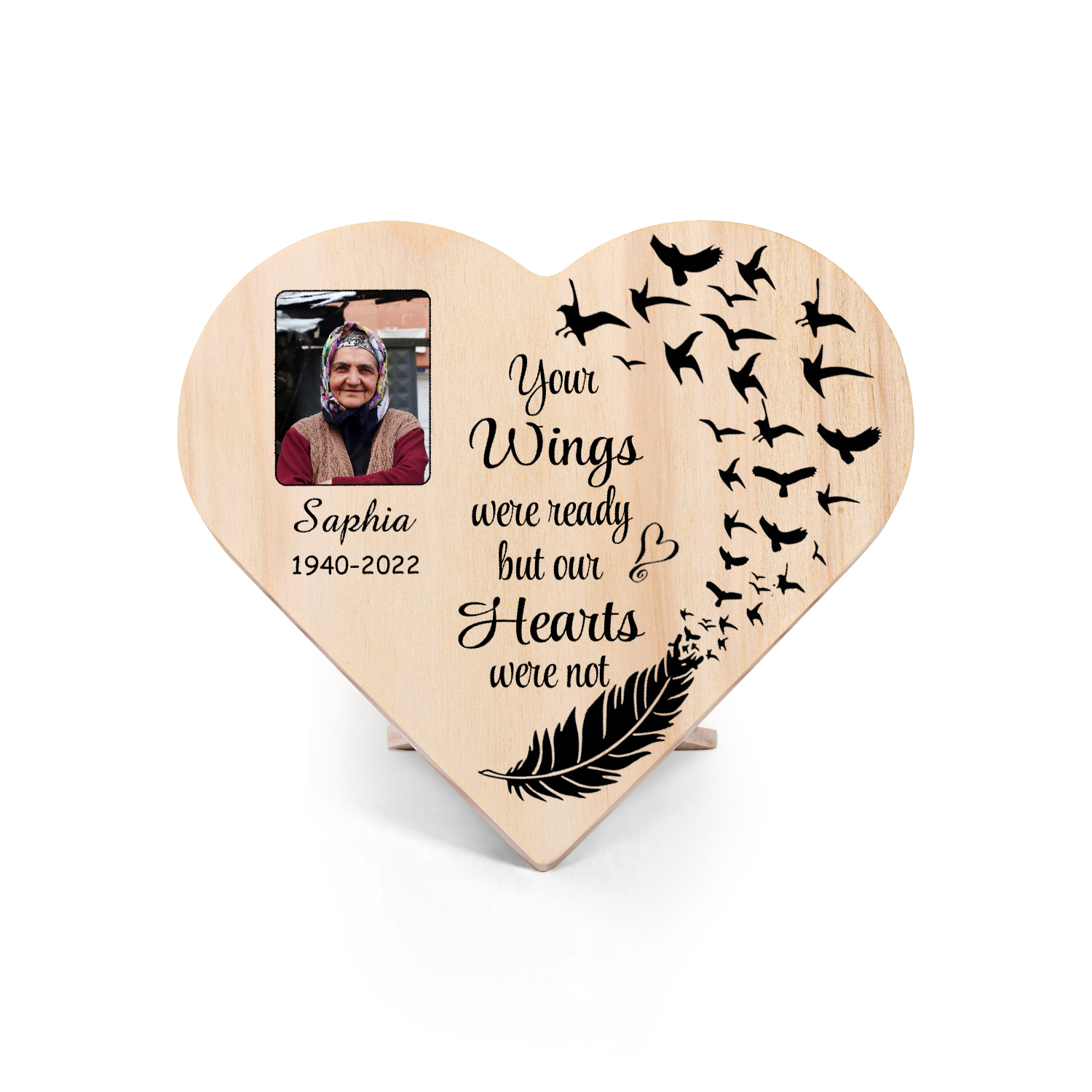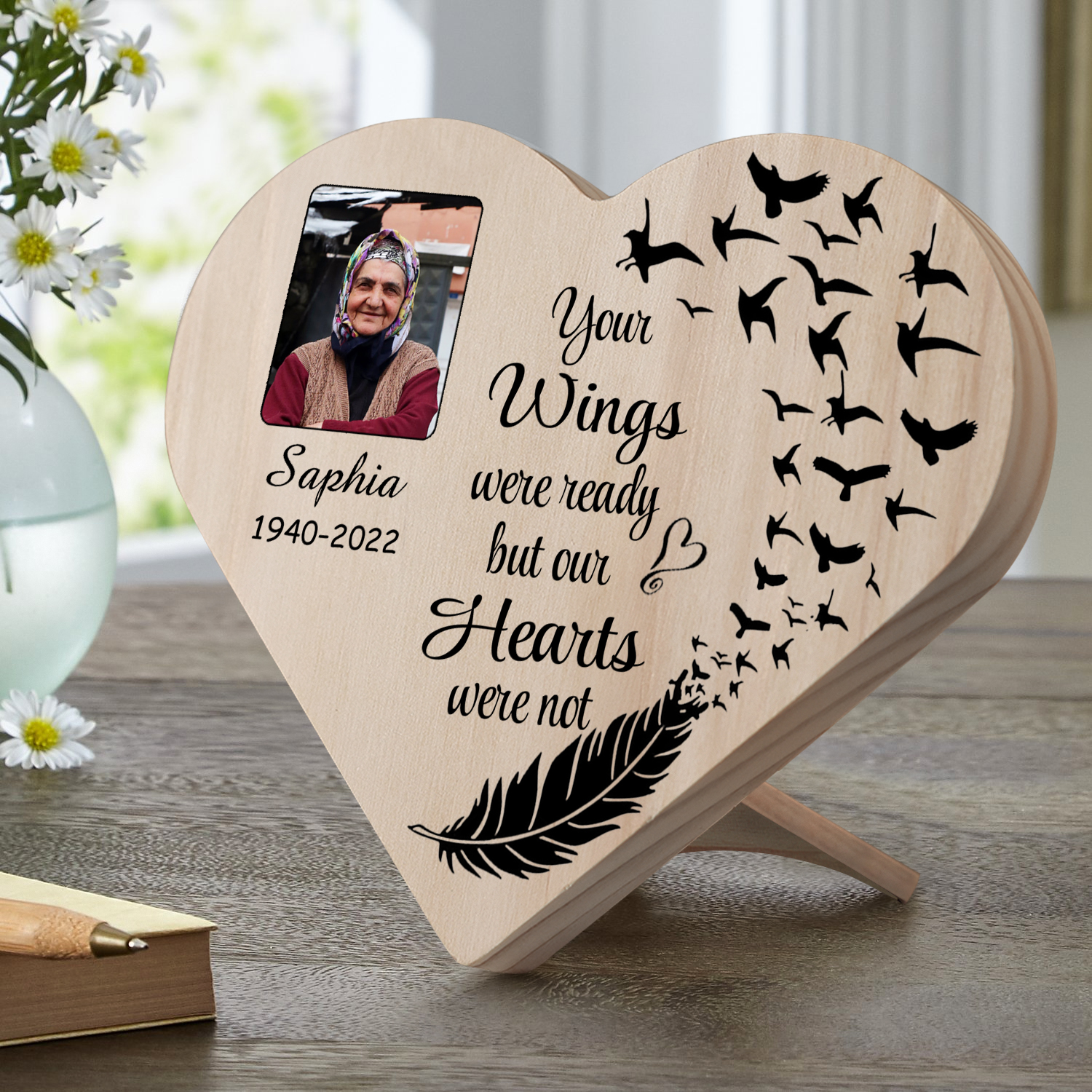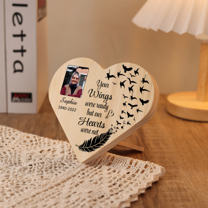 Personalised Memorial Wood Heart Ornament-Custom Heart Wooden Desktop Decoration-Your Wings Were Ready But My Heart Wasn't