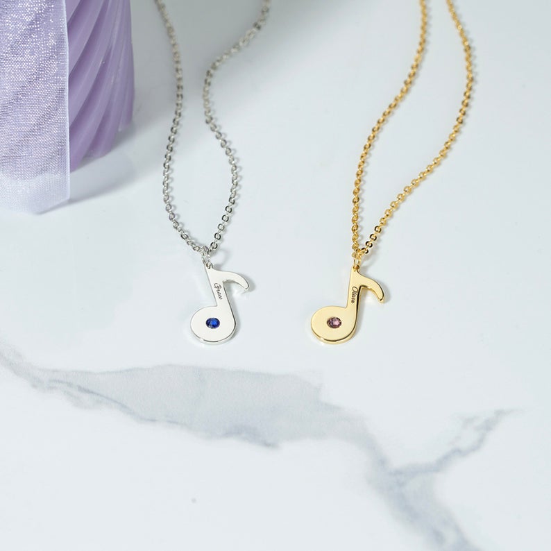 Personalised Musical Note Necklace With Birthstone Custom Names Gift For Her