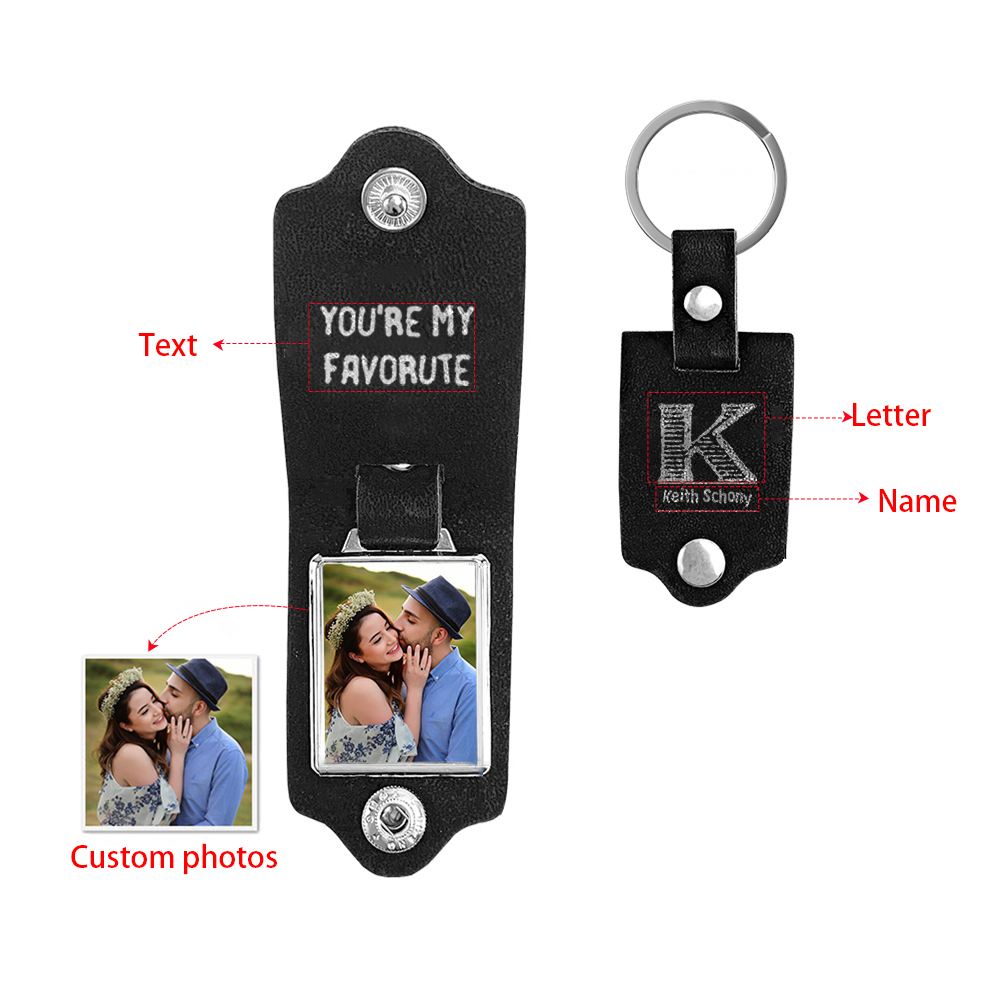 Personalised Name And Letter Flip Leather Keyring Custom Photo Keyring Gifts For Him