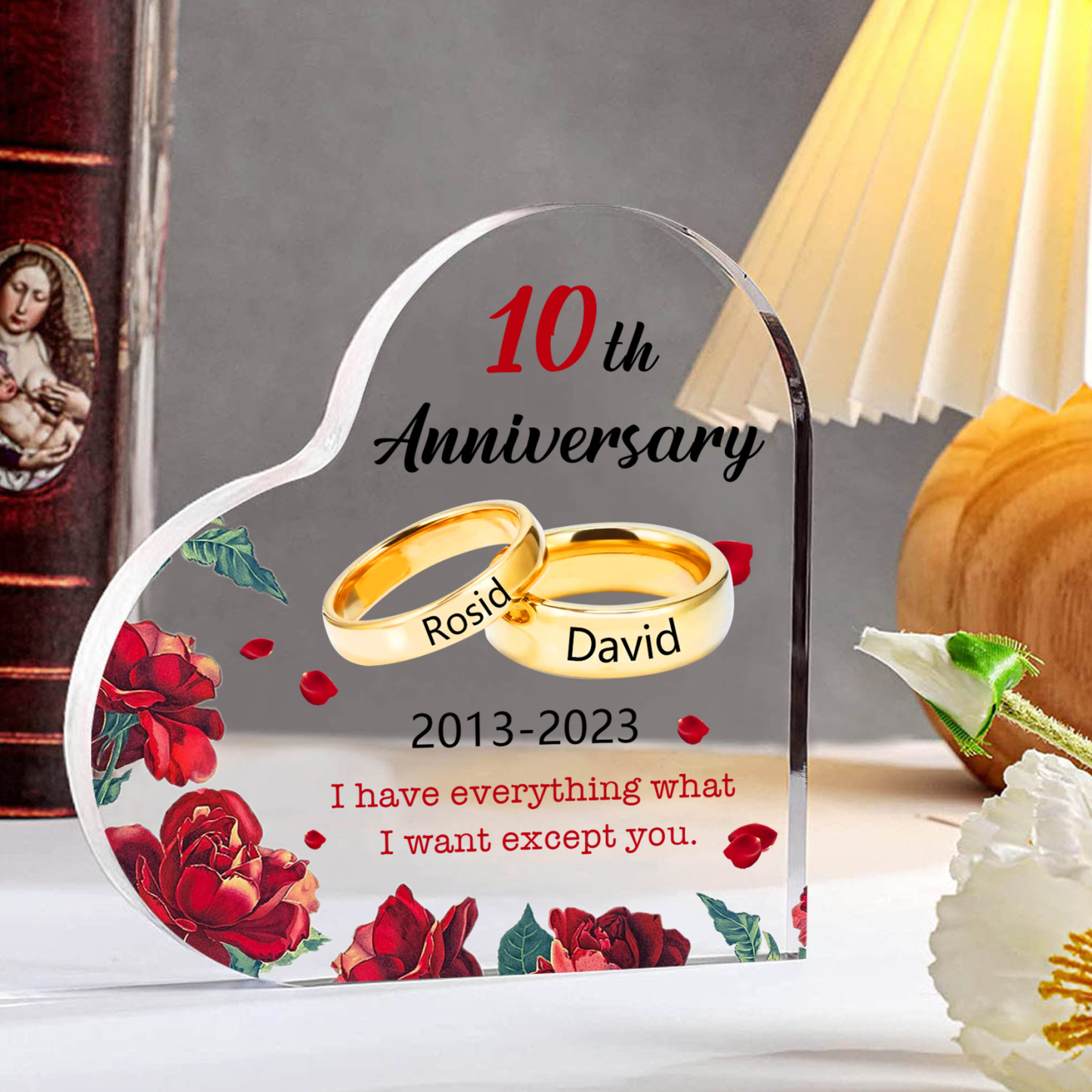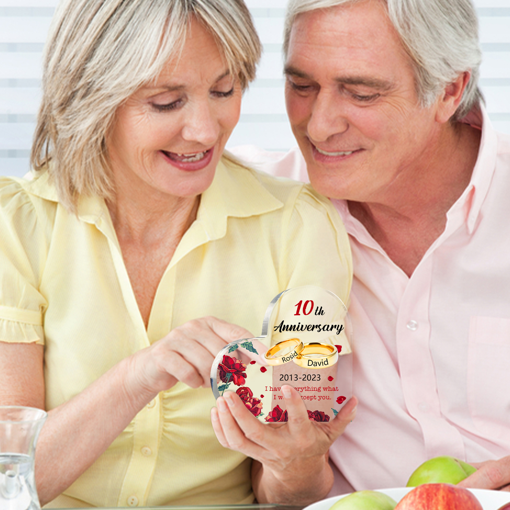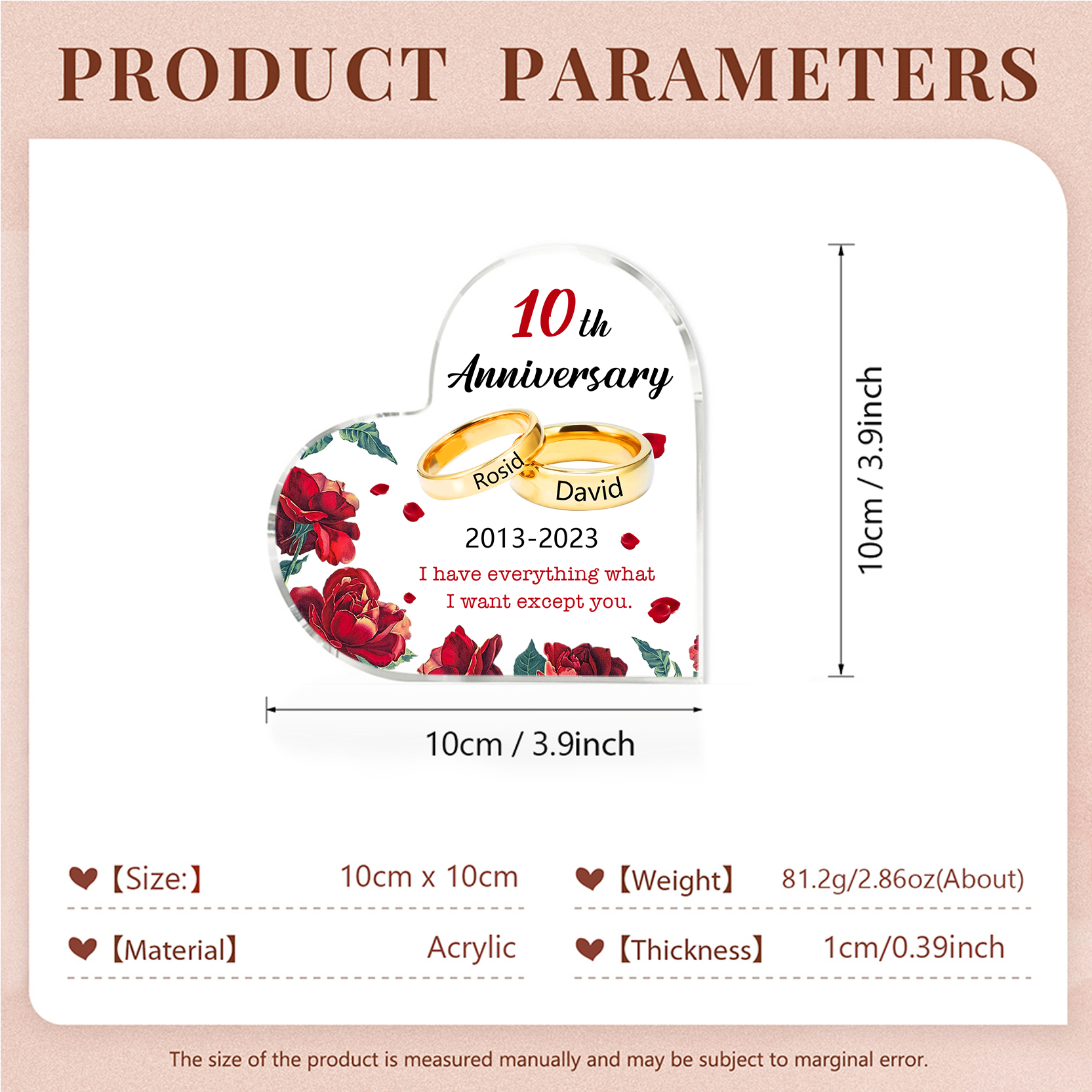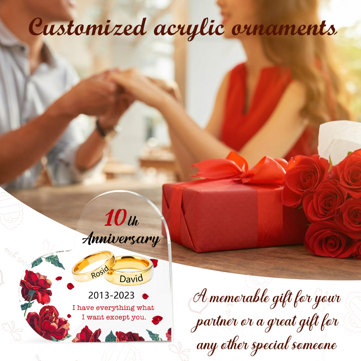 Personalised Name And Text Couple Acrylic Ornament Custom Anniversary Acrylic Heart Keepsake Desktop Ornament for Couple